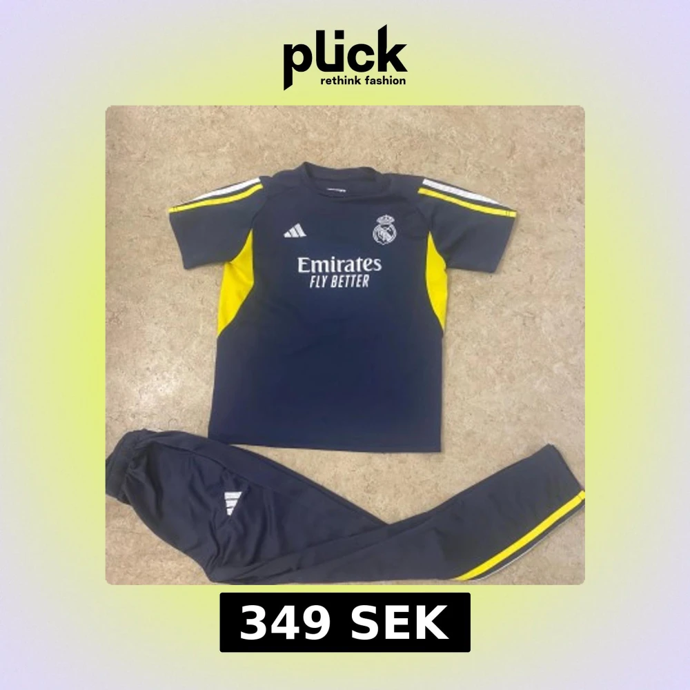 Snygg Real Madrid fotbollströja från Adidas i mörkblått med gula och vita detaljer. Tröjan har korta ärmar och tryck med Emirates Fly Better på bröstet samt klubbmärke. Materialet är lätt och andas, perfekt för träning eller match.