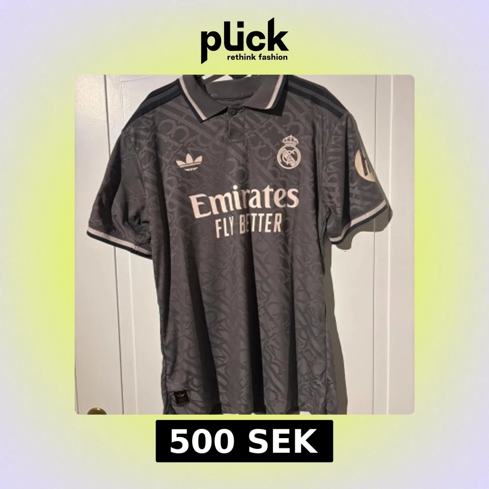 Säljer min Real Madrid tredje tröja med Mbappe #9 där bak och UCL och HP badgerna på sidan. Har aldrig använt den utan den har suttit i min garderob hela tiden. Storleken är XL men den är mindre i storlek så de är mer som L för de är Autentisk Spelar tröja. Vid frågor är det bara att skriva. OBS! detta är sista priset och inget lägre