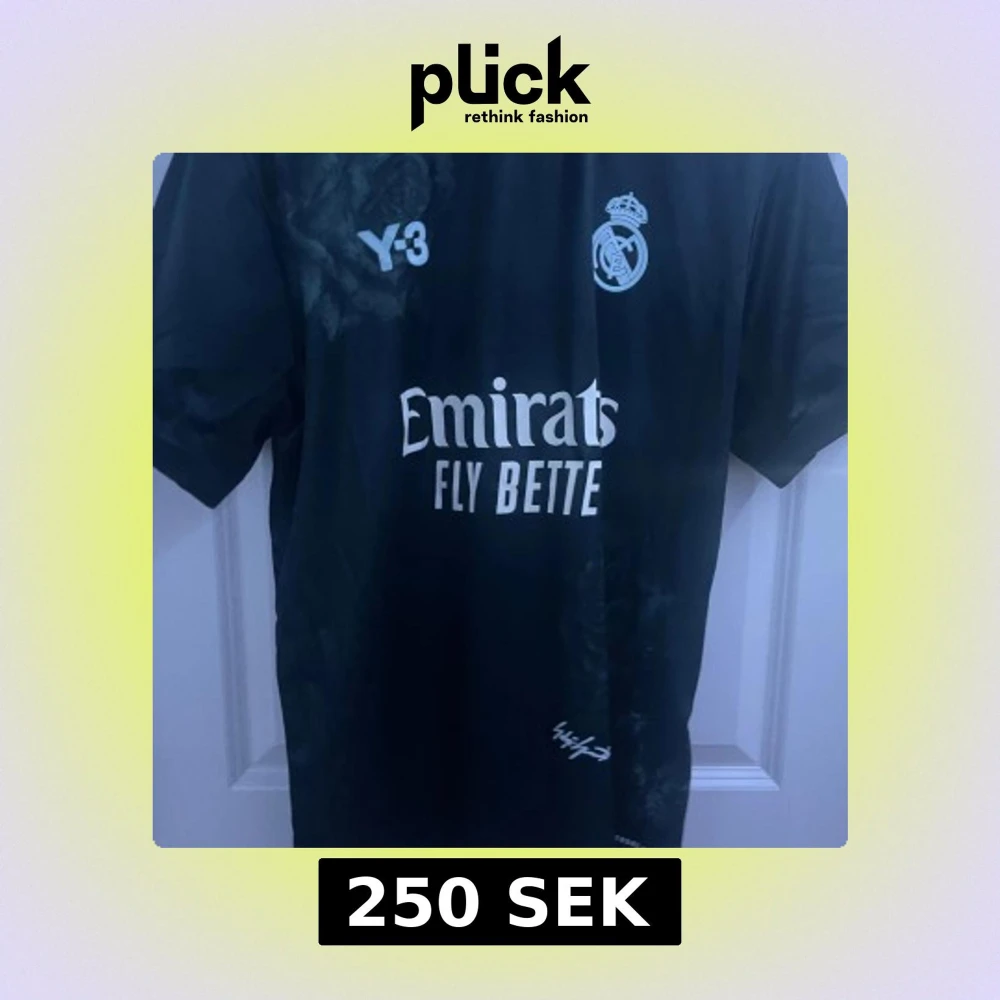 Snygg svart Real Madrid tröja från Y-3. Aldrig använd förutom testad. Sitter bra. L men skulle kunna passa M för lite mer Baggy fit. Vid snabba affärer kan jag sänka priset