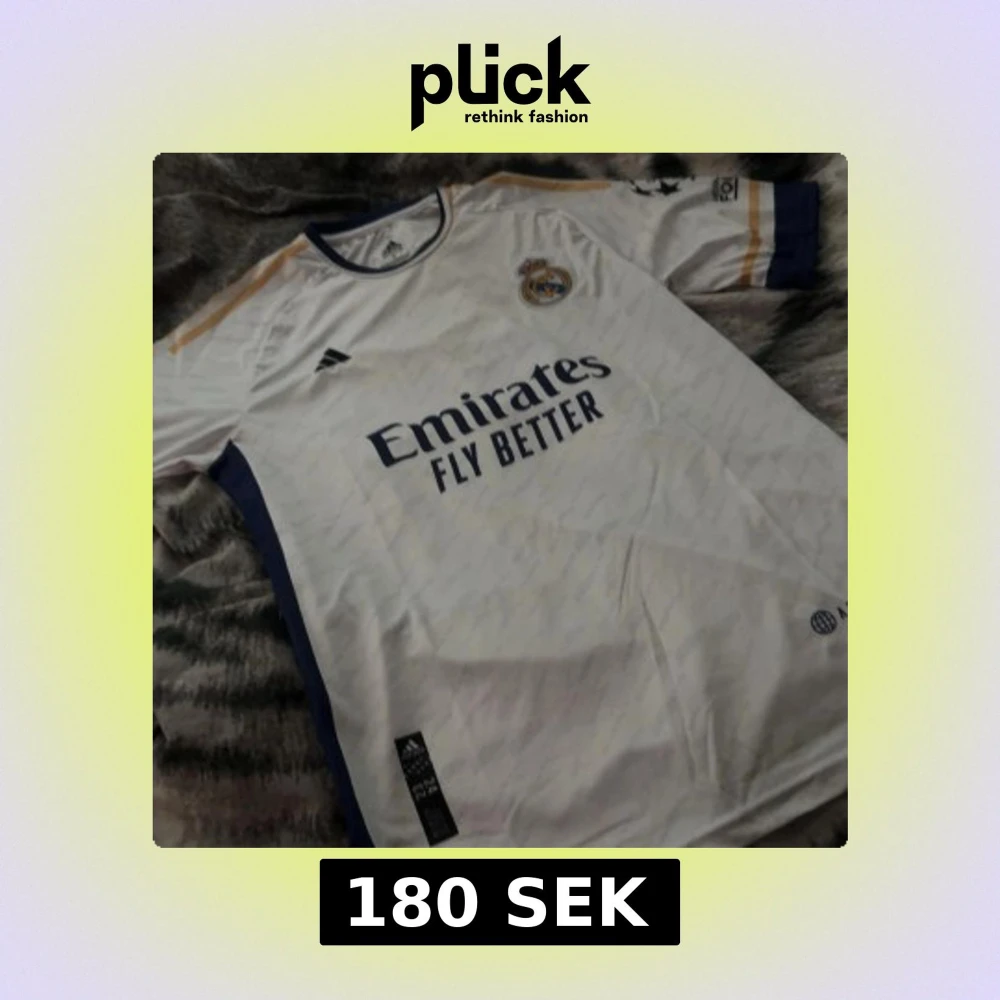Säljer en Real Madrid fotbollströja från Adidas med Arda Güler och nummer 24 på ryggen. Tröjan är vit med marinblå och guldiga detaljer, korta ärmar och klubbmärke på bröstet. La Liga- och Champions League-märken på ärmarna. Materialet är lätt och andas.