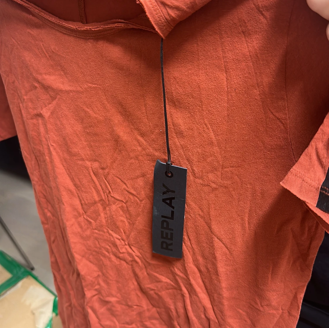 Säljer en snygg orange t-shirt från Replay. Den har en enkel design med korta ärmar och är perfekt för en avslappnad stil. Märkets etikett sitter kvar, vilket ger en extra touch av stil.