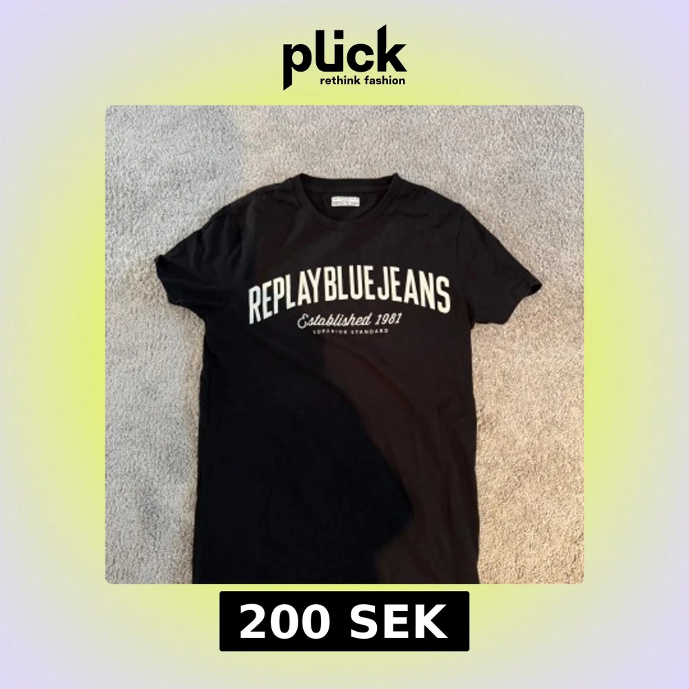 Svart t-shirt från Replay med stort vitt tryck 'REPLAY BLUE JEANS Established 1981' på bröstet. Klassisk rund hals och korta ärmar. Skön och mjuk bomullskvalitet som passar perfekt till jeans eller shorts. Snygg streetstil för dig som gillar tydliga loggor.