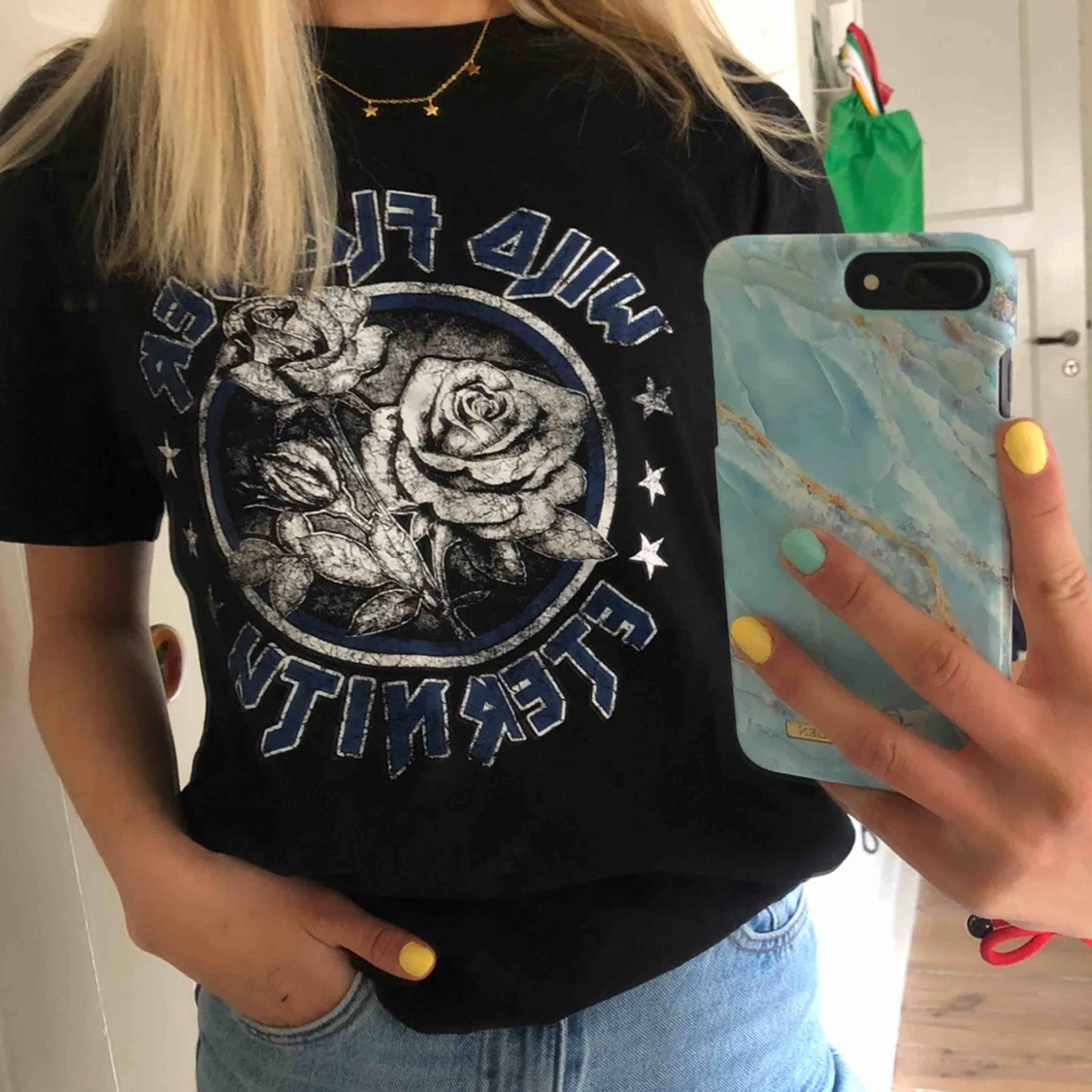 Cool svart t-shirt med tryckđđ anvĂ€nd fĂ„tal gĂ„nger och i mycket bra skick!