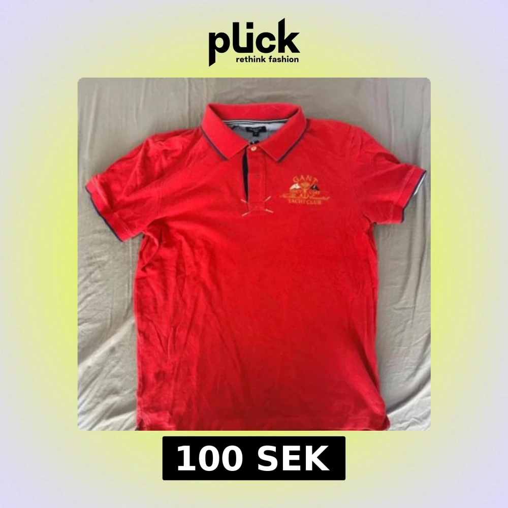 Snygg röd pikétröja från GANT med broderad Yacht Club-logga i gult på bröstet. Klassisk krage med mörkblå kant och knappslå. Tillverkad i bomull, kortärmad och med coola detaljer som broderade flaggor. Perfekt för dig som gillar preppy stil.