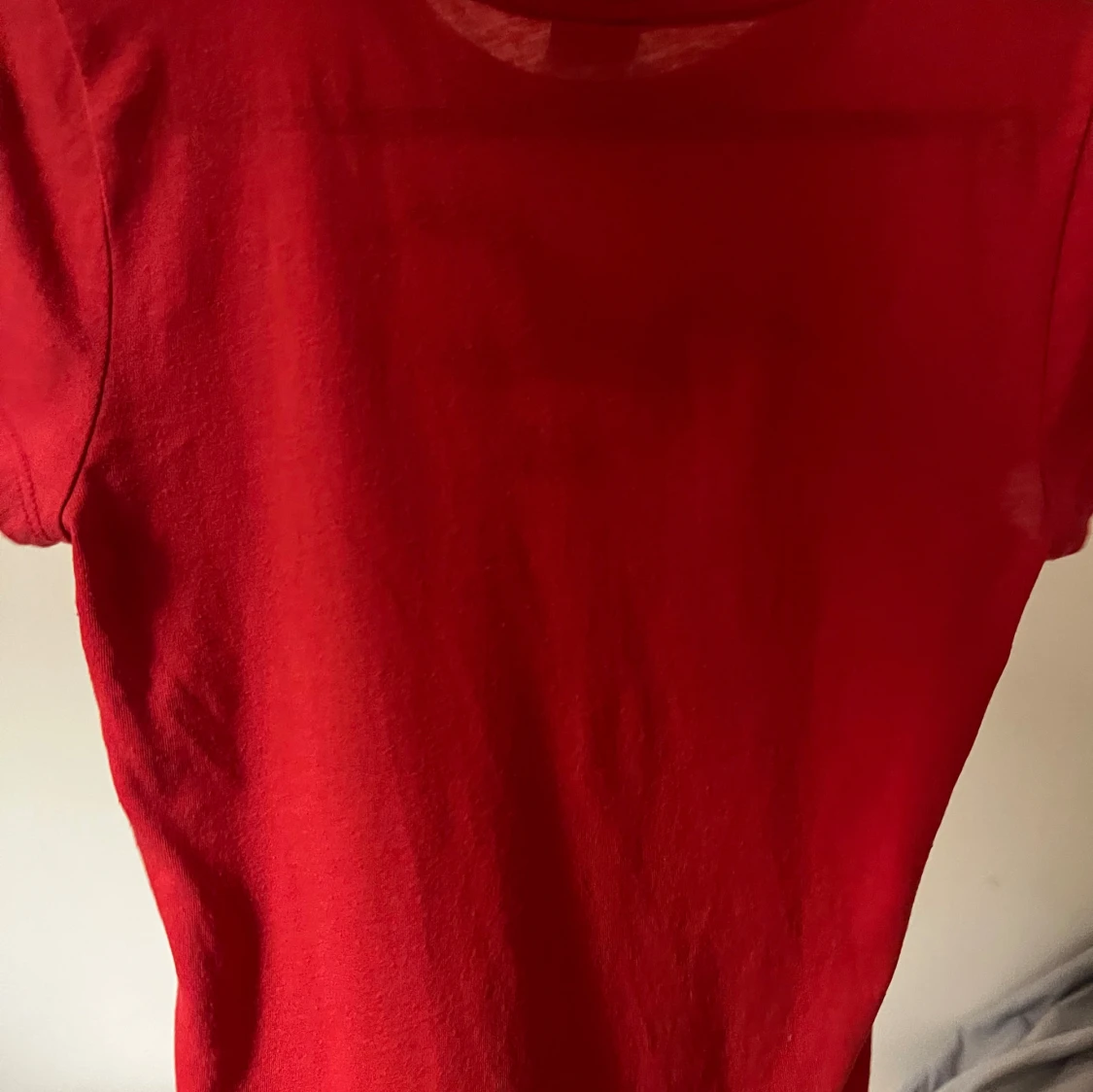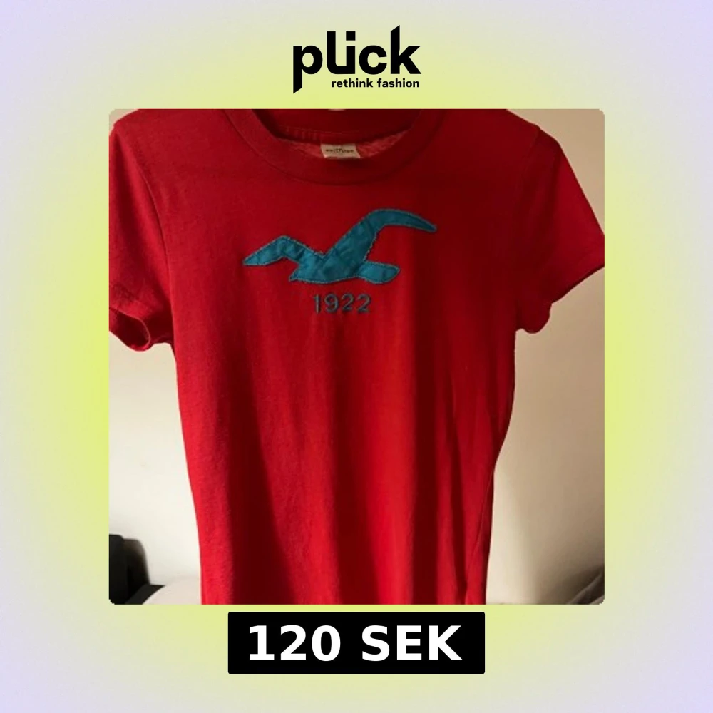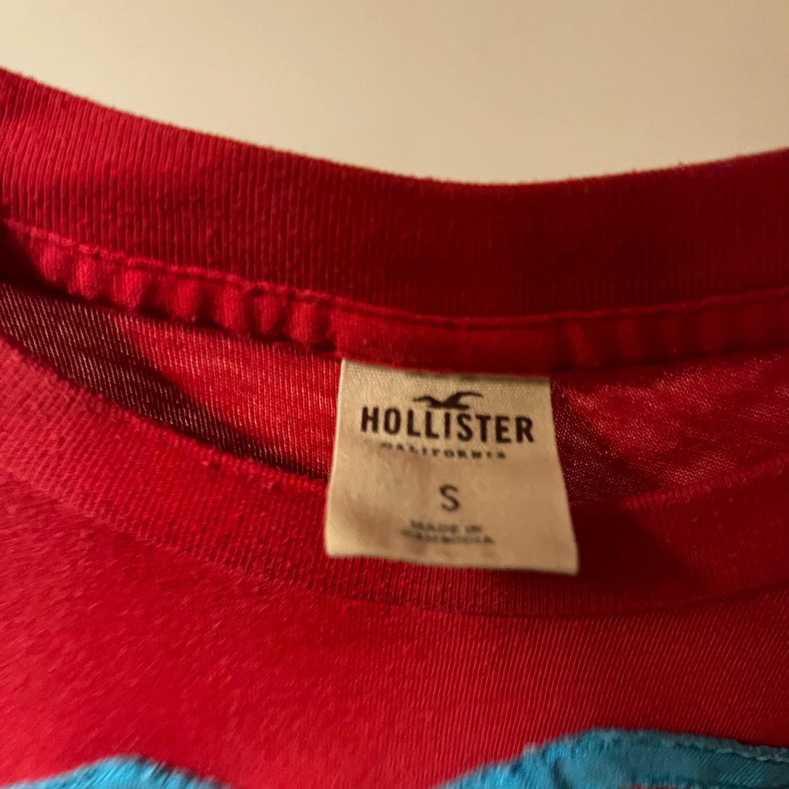 Röd t-shirt från Hollister i bomull med klassisk blå fågellogga och siffran 1922 broderad på bröstet. T-shirten har rund hals och korta ärmar, perfekt för en chill och avslappnad stil.