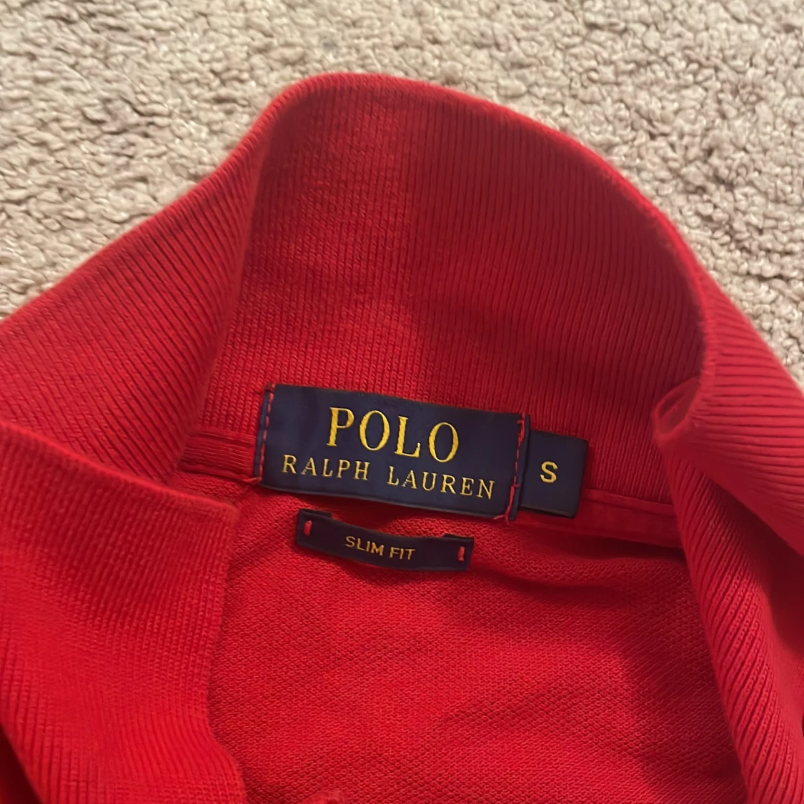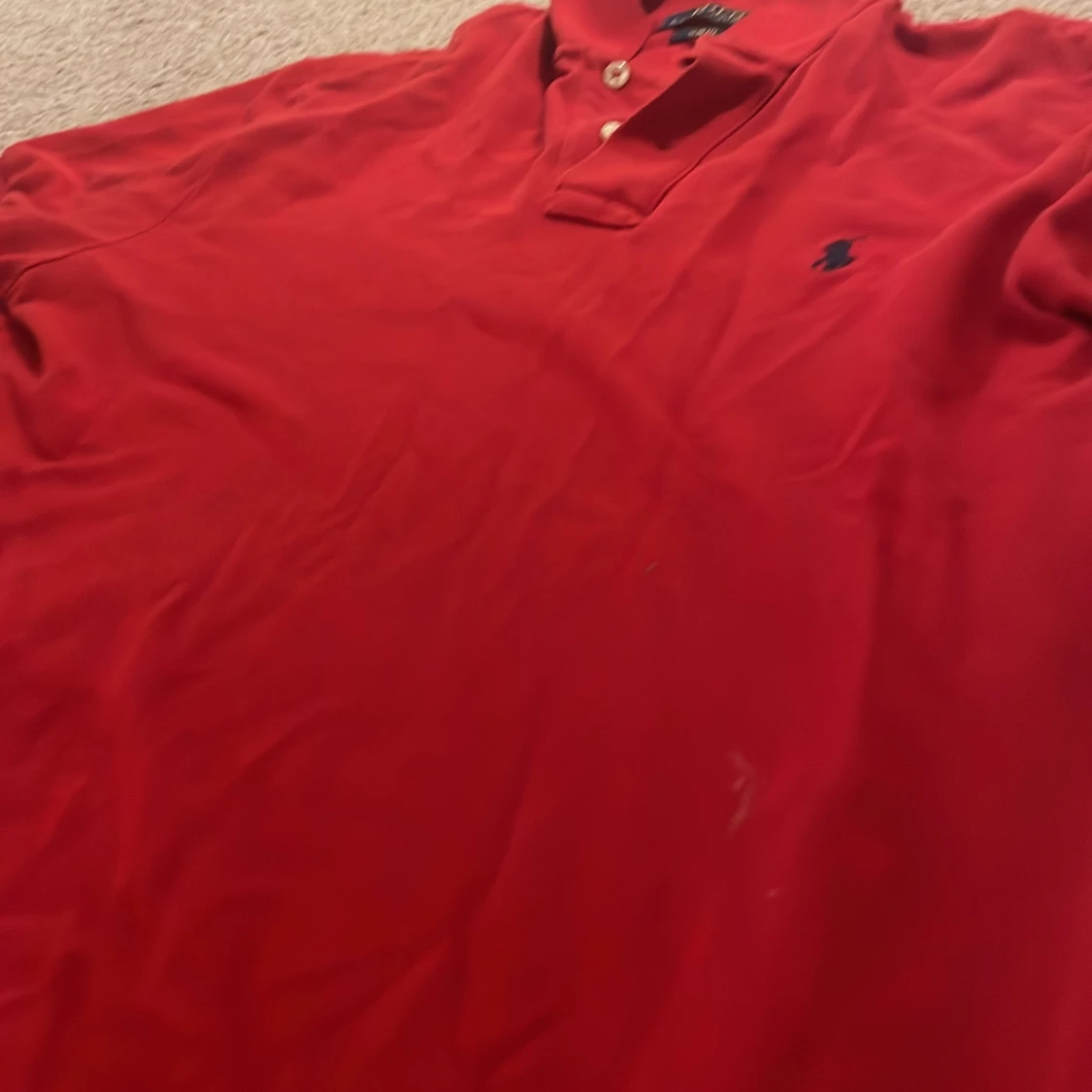 Snygg röd pikétröja från Ralph Lauren i slim fit. Tröjan har en klassisk krage med knappar och det ikoniska broderade logotypen på bröstet. Perfekt för en stilren look.