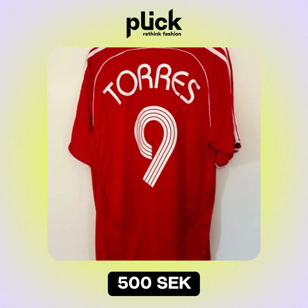 Säljer en röd Liverpool fotbollströja från Adidas med Torres och nummer 9 på ryggen. Tröjan har korta ärmar och klassisk design med Carlsberg-logga på framsidan. Perfekt för alla Liverpool-fans!