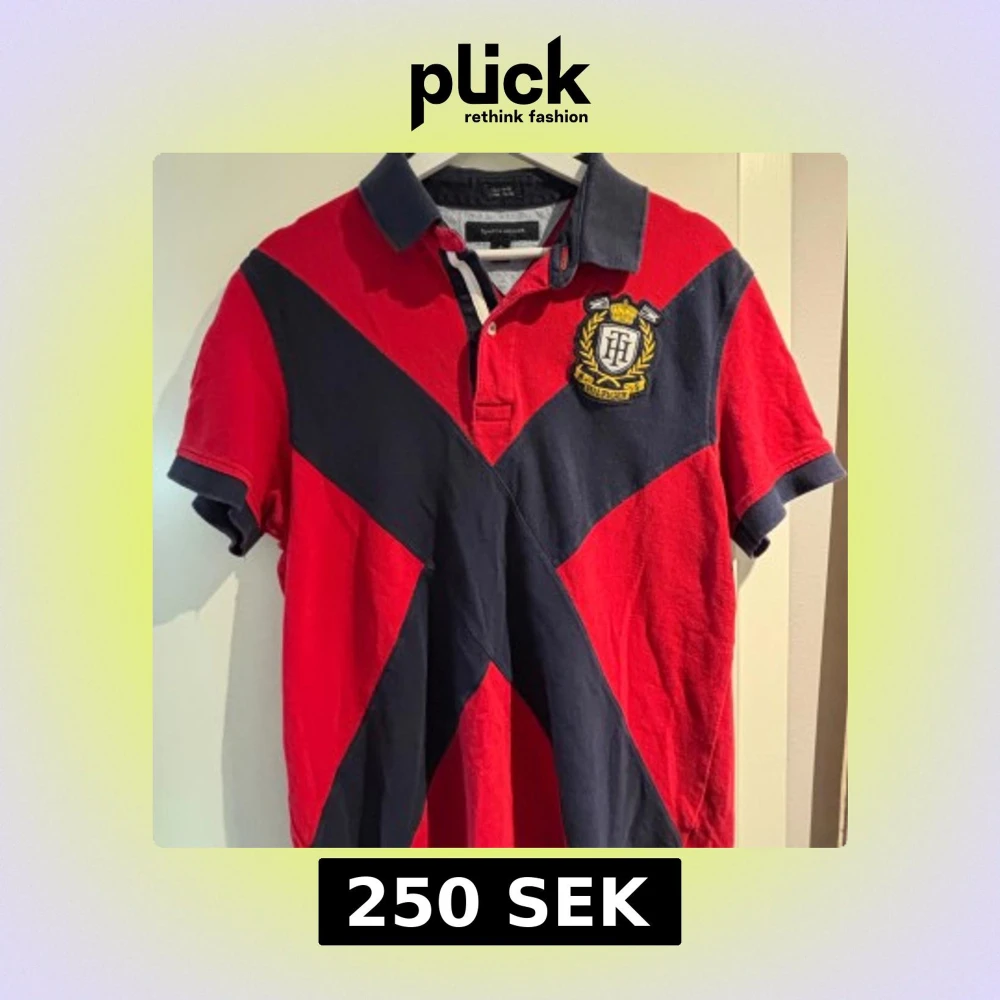 Snygg röd och marinblå t-shirt från Tommy Hilfiger med broderad crest på bröstet och stora siffran 8 på ryggen. T-shirten har korta ärmar, krage och är gjord i mjuk bomull. Perfekt för dig som gillar sportig och klassisk stil.
