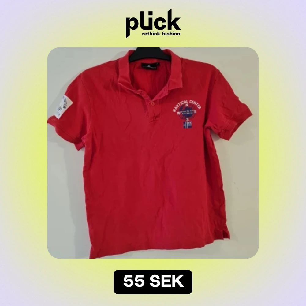 Röd pikétröja, använt skick. Storlek: L men passar S