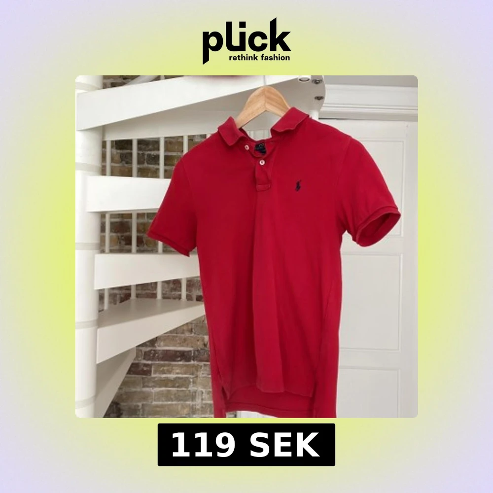 Klassisk röd pikétröja från Polo Ralph Lauren med korta ärmar och krage. Tröjan har två knappar vid halsen och den ikoniska blå broderade loggan på bröstet. Tillverkad i mjuk bomull som är skön att bära hela dagen. De går att pruta