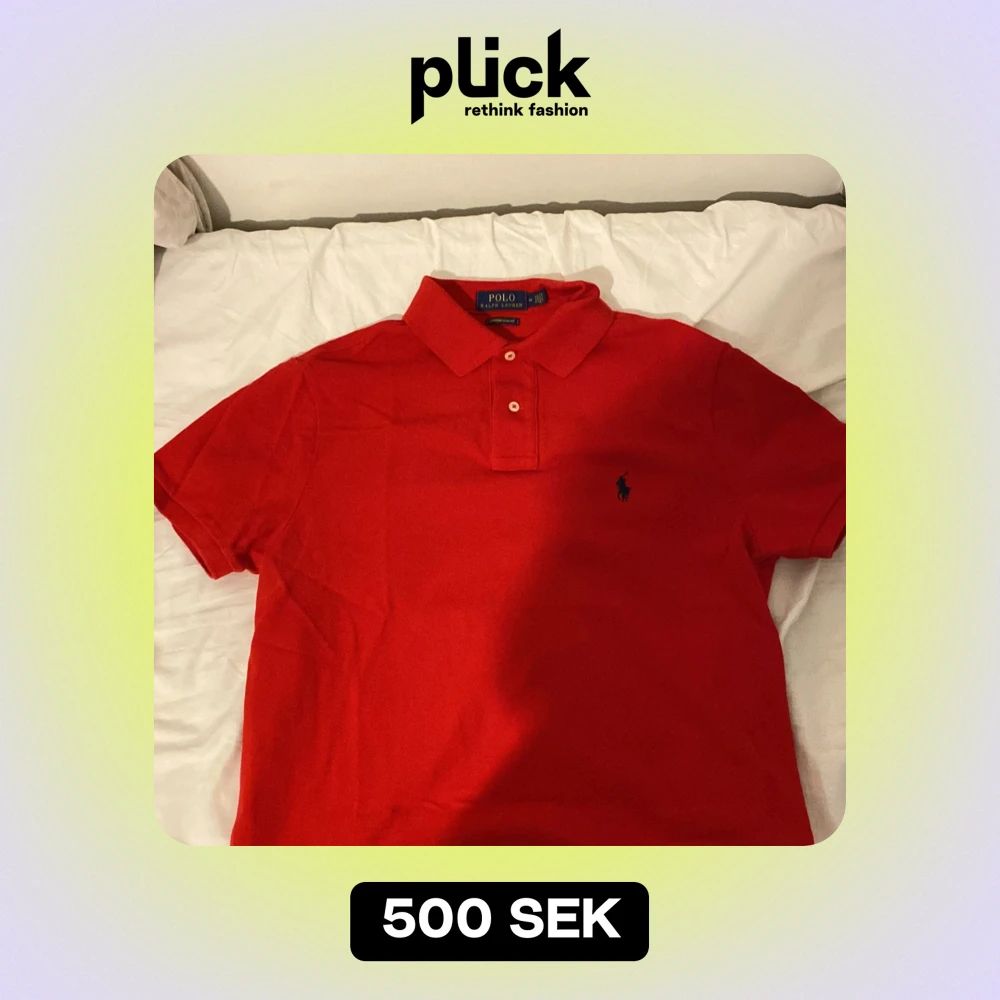 Säljer en snygg röd pikétröja från Ralph Lauren i storlek M. Tröjan har en klassisk krage och korta ärmar, perfekt för både vardag och fest. Den är i slim fit och har den ikoniska loggan broderad på bröstet. Passar perfekt till jeans eller chinos! Och den är ÄKTA!