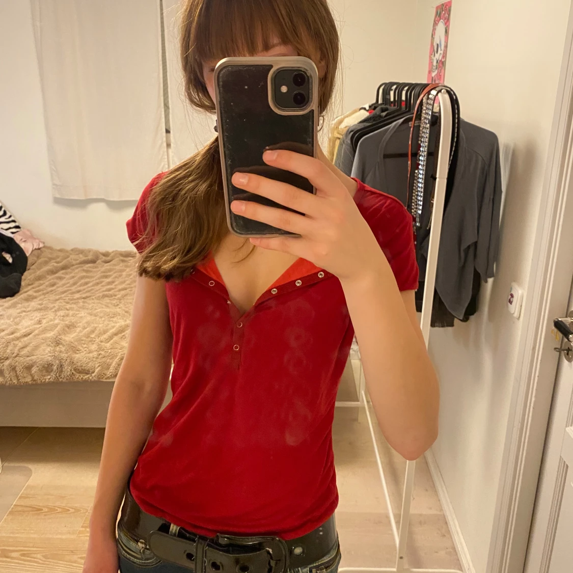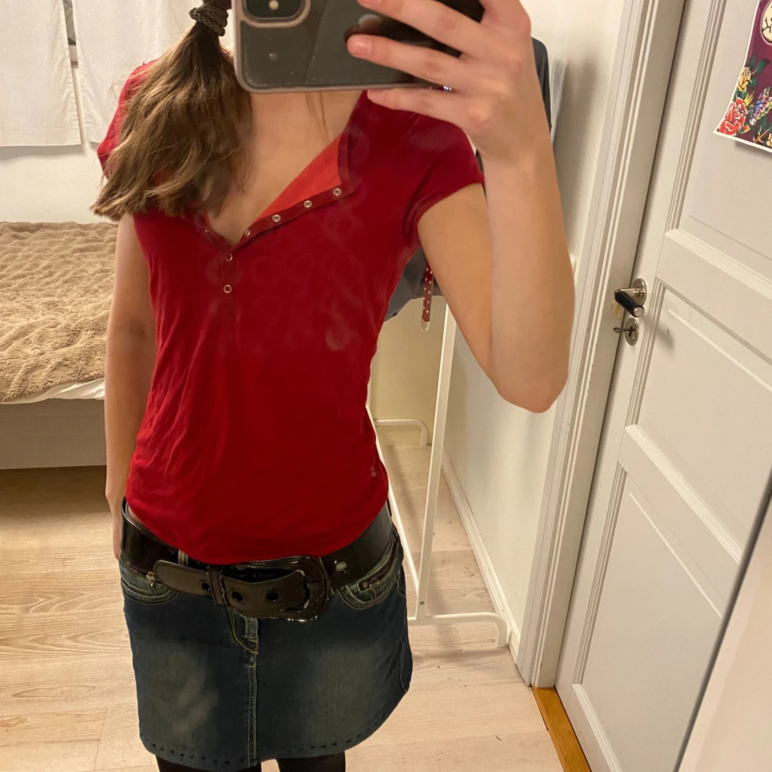 En jättefin röd y2k tshirt från one step up. Stål L men passar mig som vanligtvis har S🥰