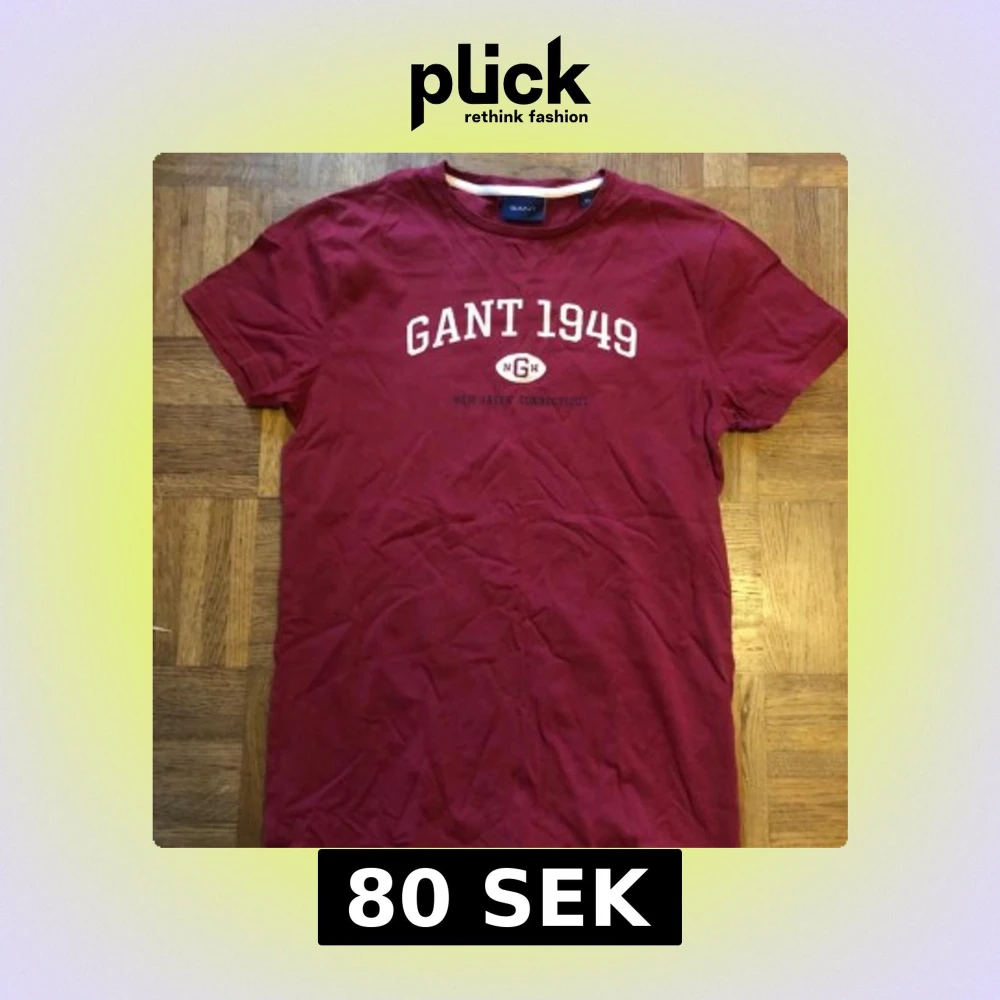Snygg röd t-shirt från GANT med tryck 'GANT 1949' på bröstet. Perfekt för en avslappnad stil. Kortärmad och tillverkad i mjukt material för extra komfort. Tröjan är i gott skick👍