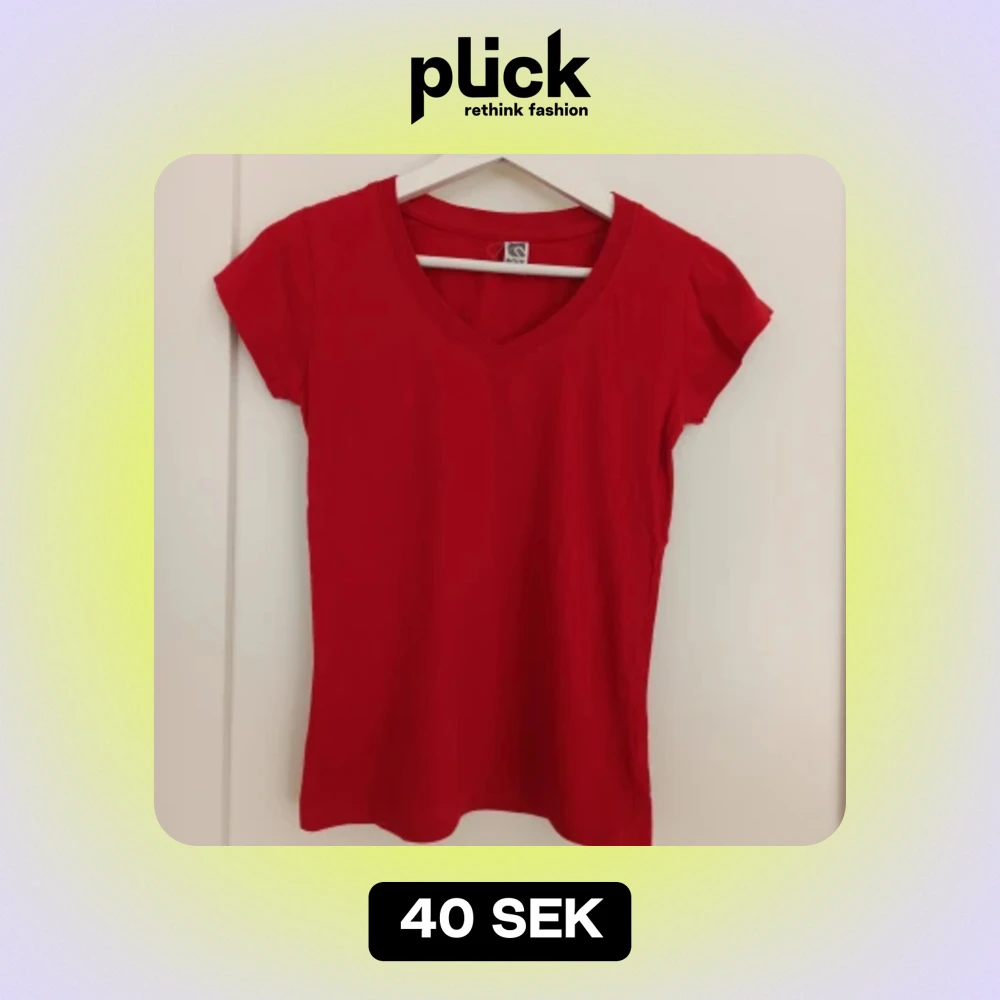 Säljer en snygg röd t-shirt från Roly i storlek S. Den är gjord av bomull och är v-ringad🌟 Passar till allt! T-shirten är i nyskick förutom en minimal fläck som syns på sista bilden. inte provat att ta bort. Passformen är mer åt det figurnära hållet och den är superbekväm att ha på sig. Köp den nu och ge din garderob en färgklick! ❤️