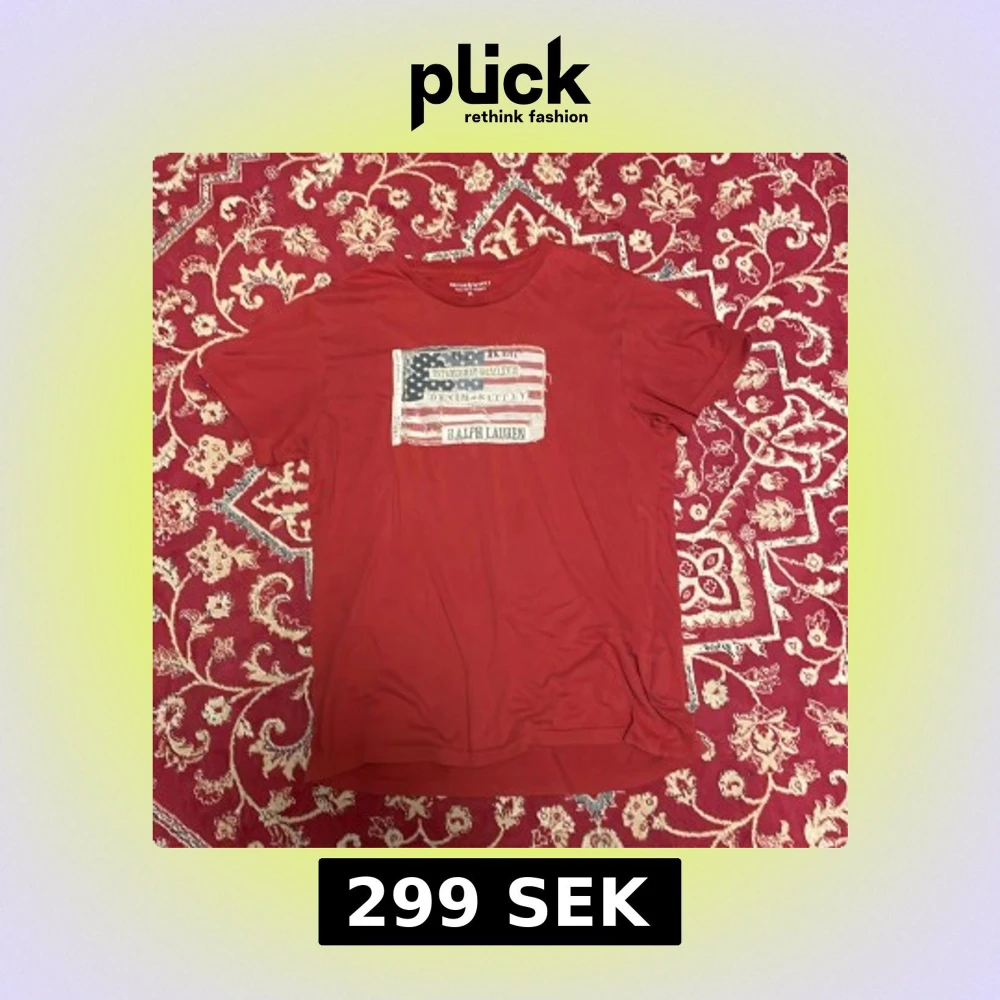 Röd t-shirt från Ralph Lauren Denim & Supply med coolt tryck av amerikansk flagga och broderade detaljer framtill. Klassisk rund hals och korta ärmar. Skön och mjuk bomullskvalitet, perfekt för en avslappnad stil.