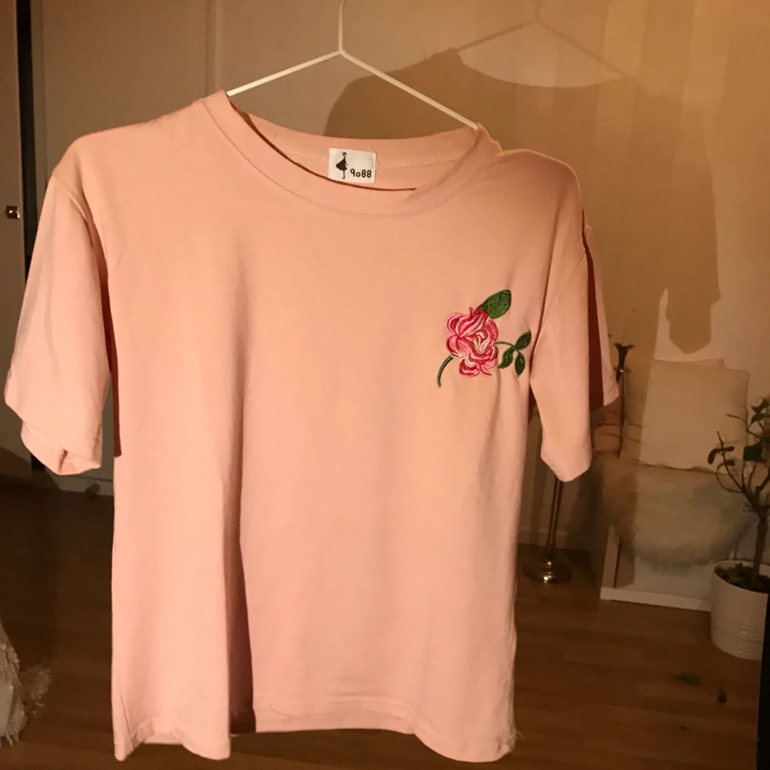 🌸rosa t-shirt med blombroderi. aldrig använd 🌸