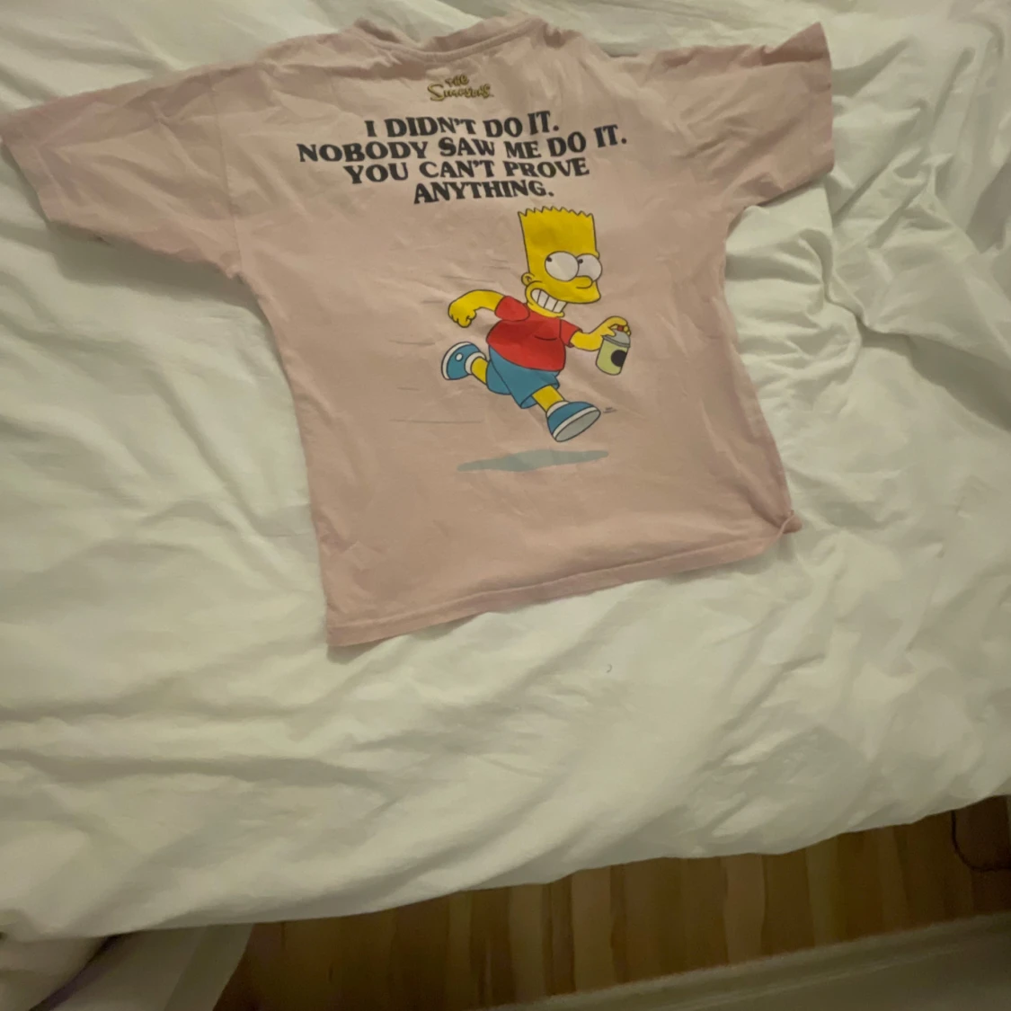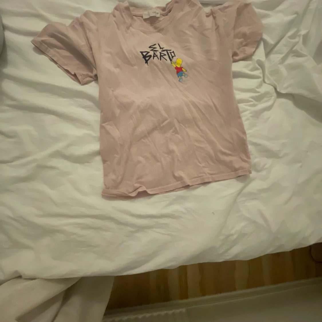 Rosa t-shirt från Zara med tryck av Bart Simpson och texten 'El Barto' på framsidan samt ett stort motiv och citat på baksidan. Skön passform och klassisk rund hals. Perfekt för dig som gillar The Simpsons och vill sticka ut med en cool look.