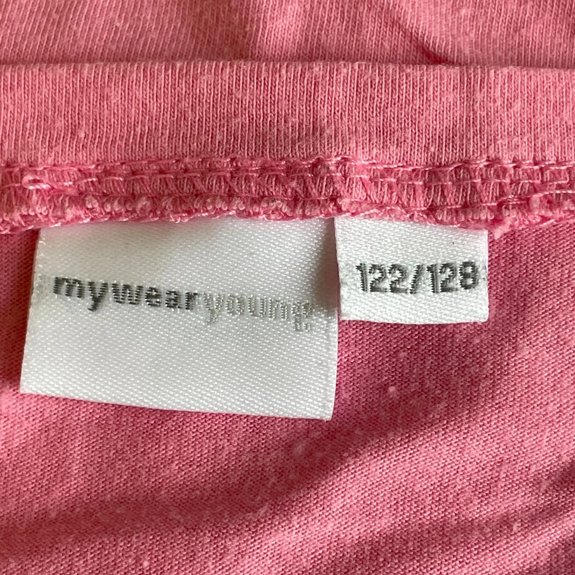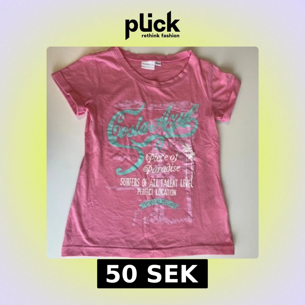 Snygg rosa t-shirt från Mywear Young med Costa Azul-tryck i turkos och vitt framtill. T-shirten har rund hals, korta ärmar och är gjord i mjuk bomull och polyester. Perfekt för dig som gillar surf vibes och tropiska motiv.