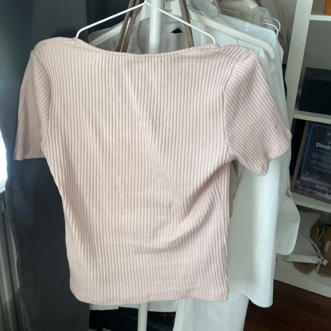 Rosa ribbad t-shirt ifrån Gina, knappt använd. Skulle säga att den passar S-M. Super söt. Kan gå ner i pris