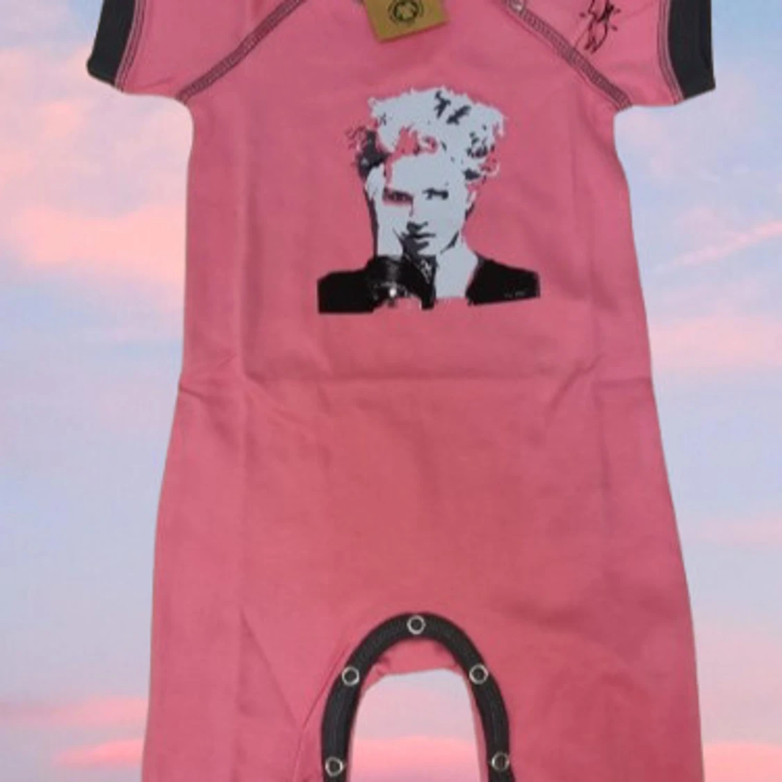 Låt din lilla rockstjärna sticka ut i denna unika rosa babyromper med ett ikoniskt ansiktstryck. Med kontrasterande mörkgrå detaljer, praktiska tryckknappar och en cool design är denna romper både bekväm och stilfull för de minsta. Perfekt för vardagsbruk eller som en rolig present! Specifikation Kategori: Barnkläder (Babyromper) Färg: Rosa med mörkgrå detaljer Design: Ikoniskt ansiktstryck Ärm: Kortärmad Storlek: 74-80 (ca 6-12 månader) Detaljer: Tryckknappar för enkel på- och avklädning