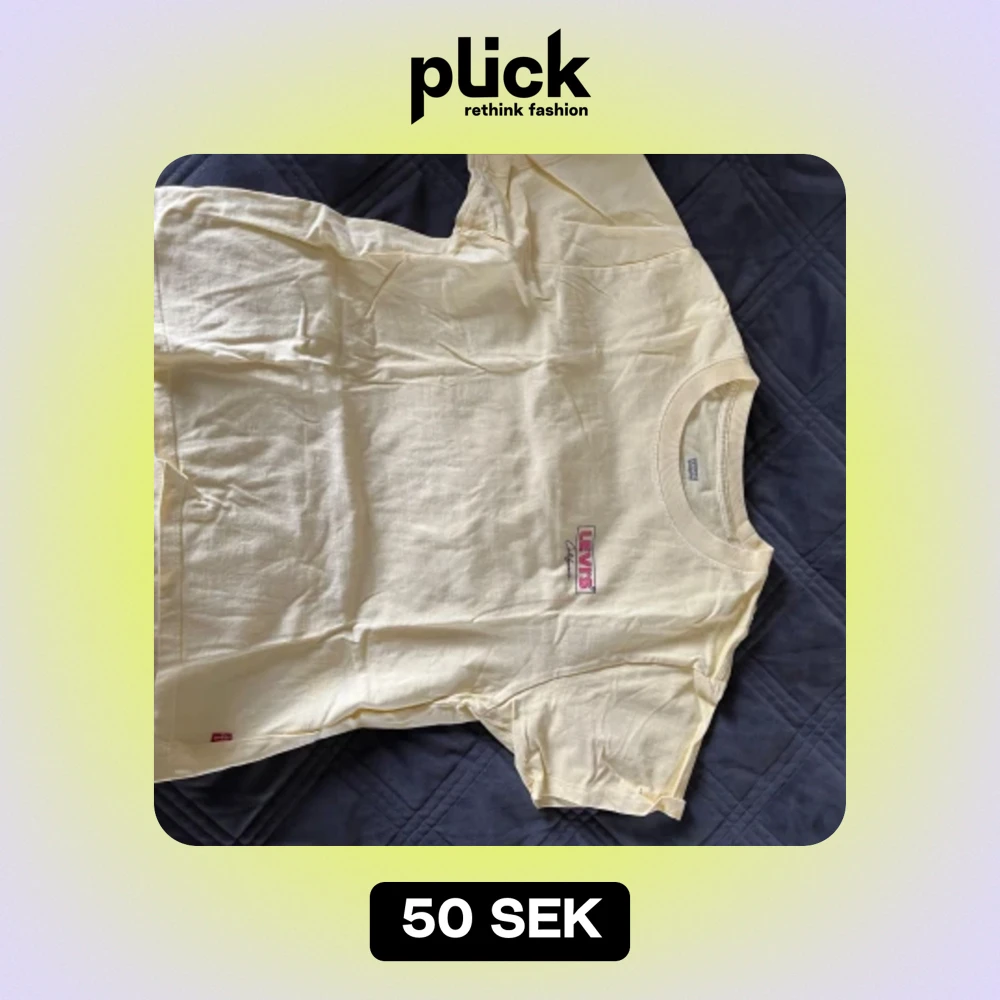 En ljusgul T-shirt som passar bra till vår och sommar. Fin rosa detalj. Lite kortare i modellen men sitter väldigt fint, säljer då jag växt ur den.
