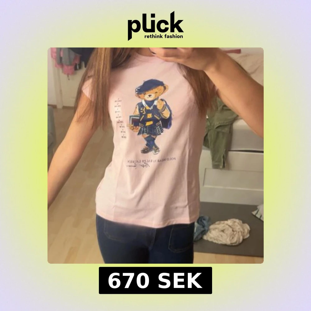 Söt ljusrosa t-shirt från Ralph Lauren med ikoniska Polo Bear-trycket framtill. Klassisk passform och korta ärmar, perfekt till jeans eller kjol. Mjuk bomull som känns skön mot huden. En riktig statement-piece för dig som gillar gulliga och trendiga plagg. Kun brukt noen ganger