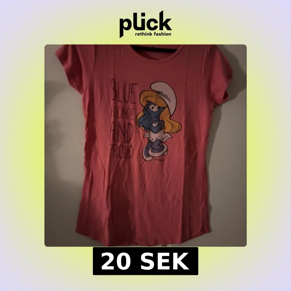 Cool rosa t-shirt med Smurfan-tryck och texten 'Blue Blonde And Proud' på framsidan. T-shirten har rund hals och korta ärmar, tillverkad i mjuk bomull. Perfekt för dig som gillar retro och tecknade figurer.