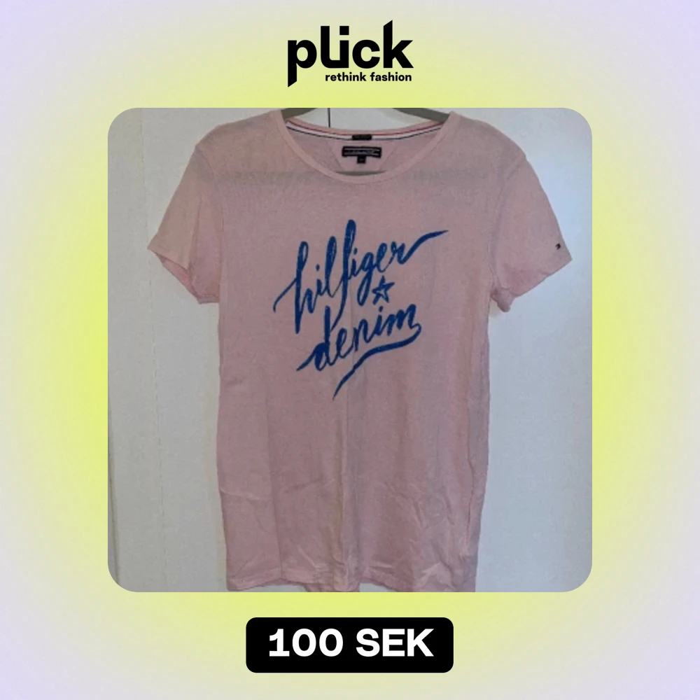 Tommy Hilfiger t-shirt i ljusrosa med ett blått tryck fram. Endast använd några enstaka gånger. Storlek 176 men passar en Xs.🩷