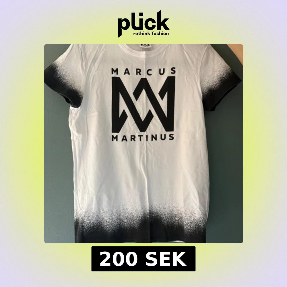 Äkta merch. Vit t-shirt från Marcus & Martinus med svart logotryck på bröstet och text på ryggen. Använd men i bra skick!