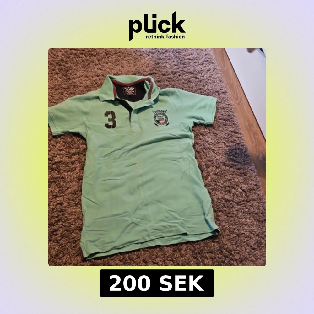 Säljer en snygg grön pikétröja från Vinson Polo Club med svart nummertryck och broderad logga på bröstet. Tröjan har en klassisk krage med röd och svart randig detalj på insidan. Perfekt för en sportig look!