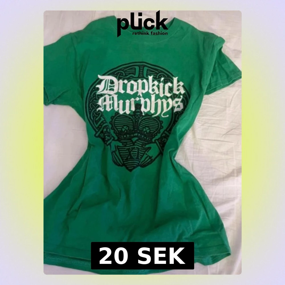 Snygg grön t-shirt med Dropkick Murphys-tryck fram och turnédatum på ryggen. Klassisk rund hals och korta ärmar. Perfekt för dig som gillar bandmerch och vill sticka ut med en unik tourtröja.