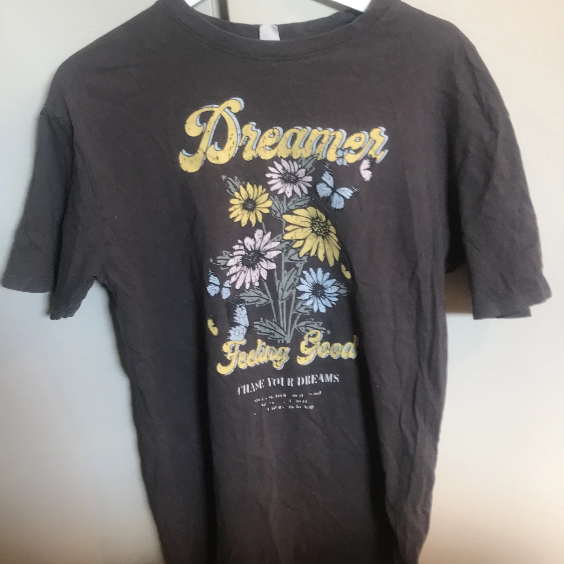 Svart t-shirt med tryck 'Dreamer' och blommor