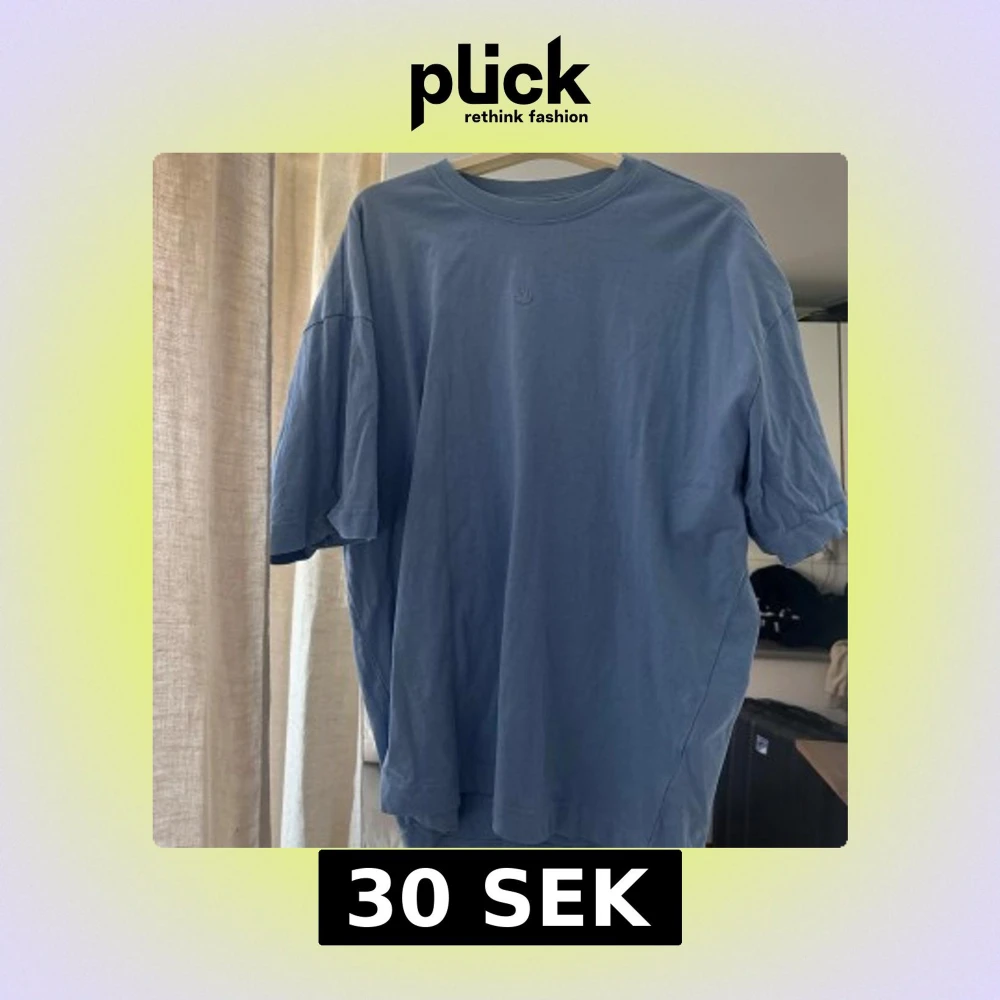 Säljer en ljusblå oversized t-shirt i bomull med broderad smiley på bröstet.