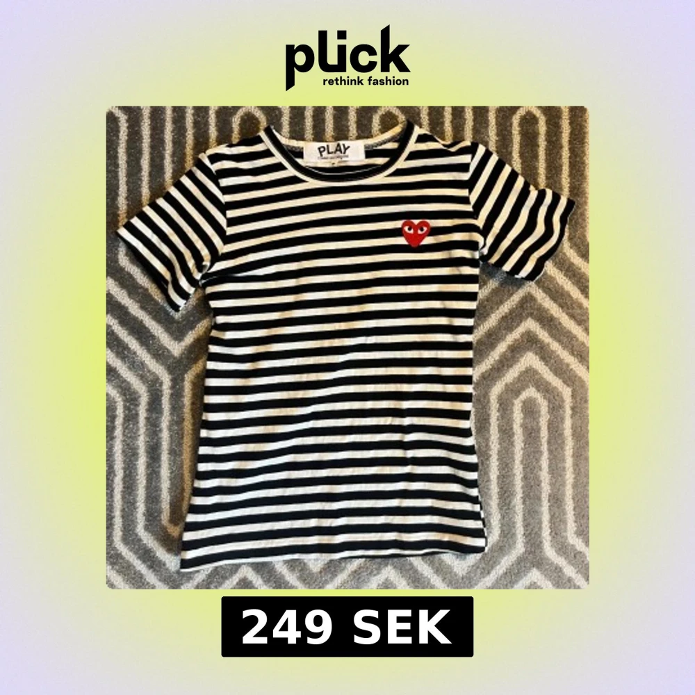 Säljer en snygg svartvit randig t-shirt från Comme des Garçons Play i storlek S med det klassiska röda hjärtat på bröstet. En liten defekt på ryggen(se sista bilden) som knappt syns när man har på den. Tveka inte att skriva ifall du undrar nåt!✨