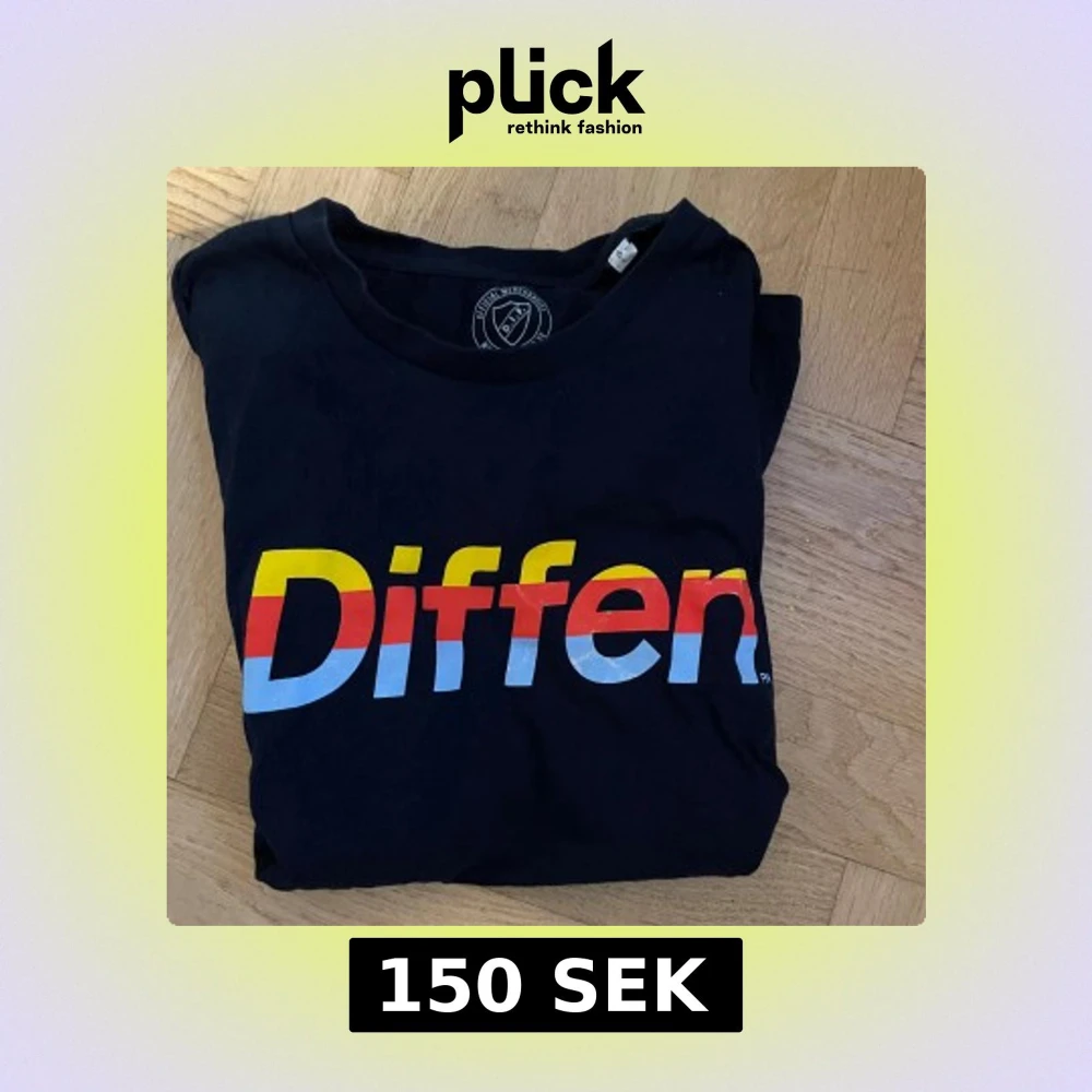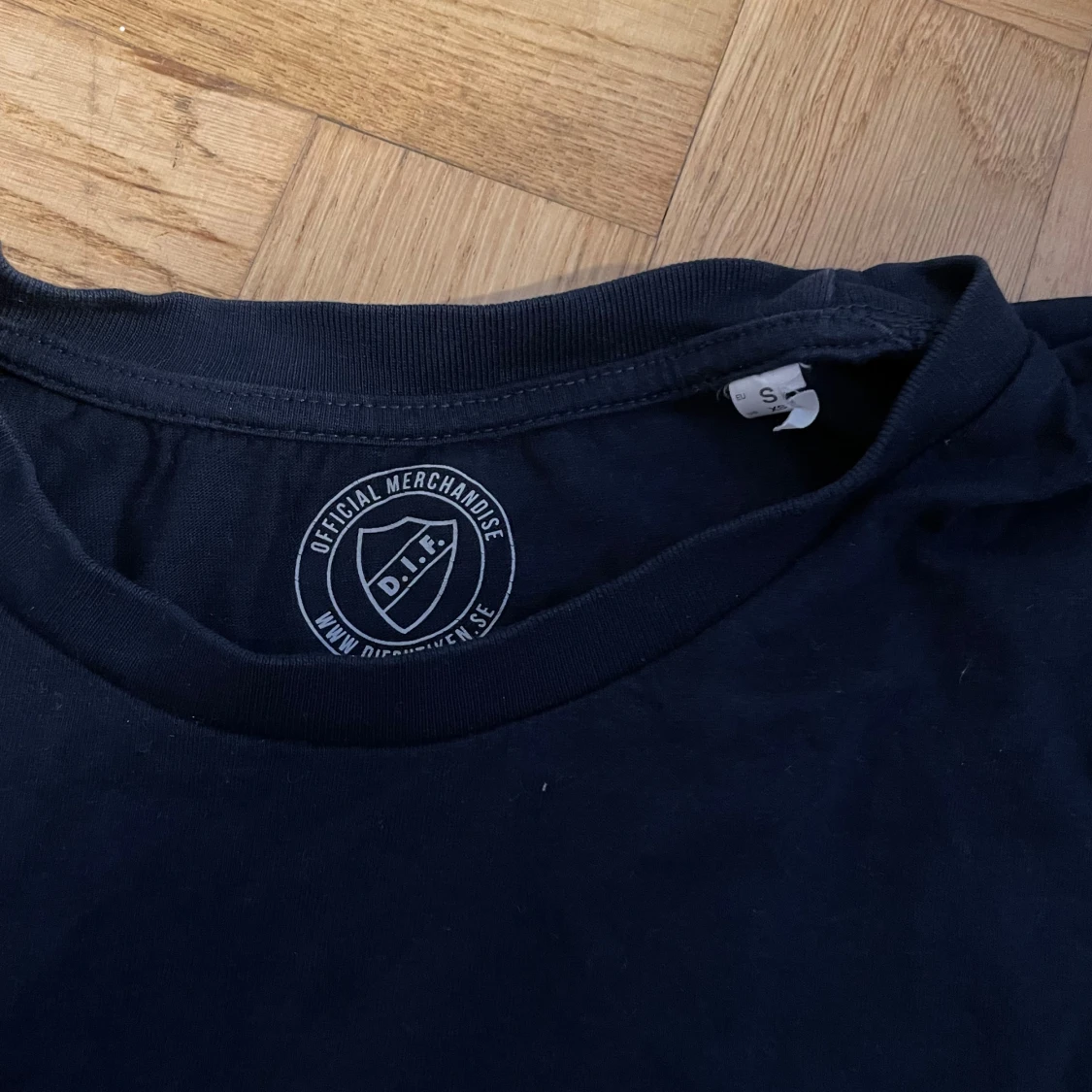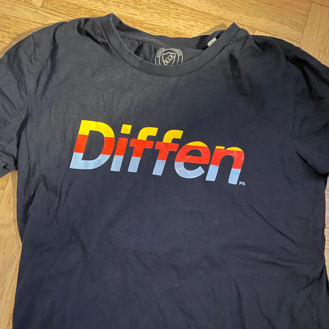 Säljer en svart t-shirt från Djurgården med ett stort, färgglatt 'Diffen' tryck i gult, rött och blått på framsidan. Perfekt för alla Djurgården-fans! 💛❤️💙lite slitet vid trycket