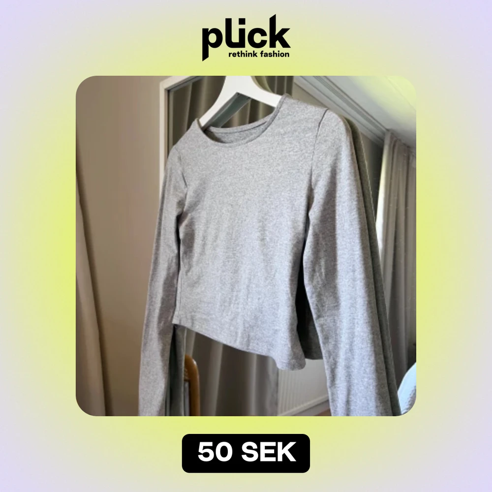 Långarmad tröja. Grå melerad. Croppad. Stl S. 50:-.