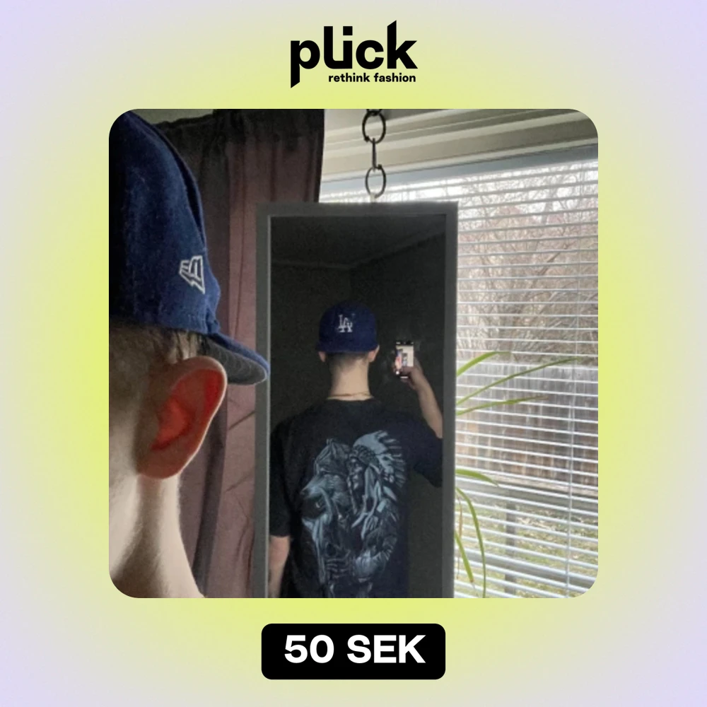Storlek xl. Är 179cm lång och den passar perfekt som overaized tshirt. 100% bomull och fett tryck!