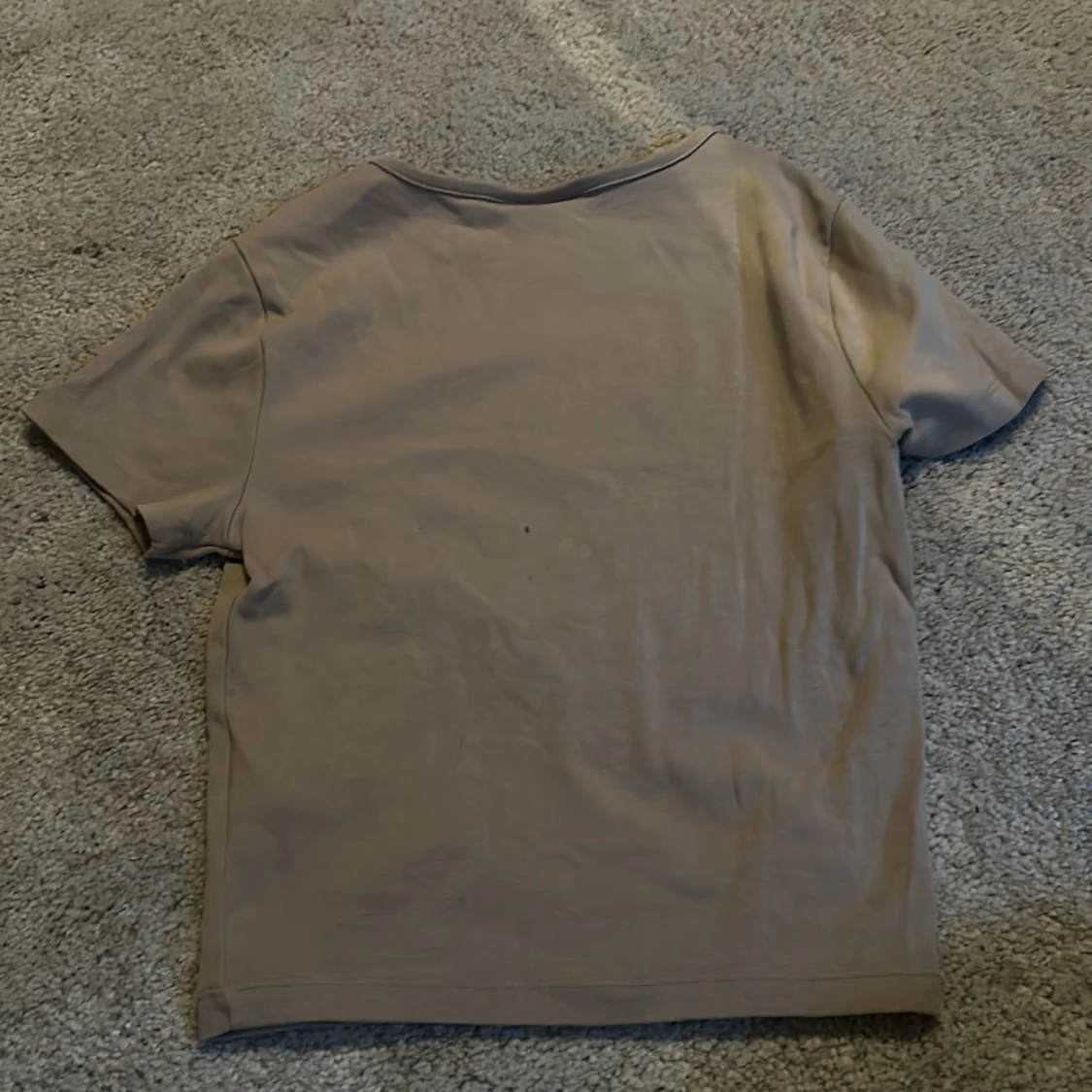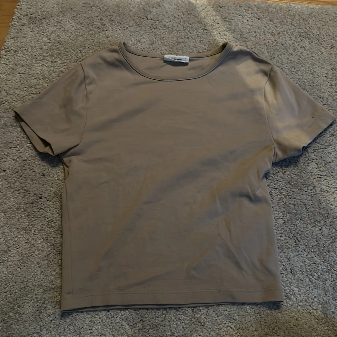 T-shirten är i fint skick knappt använd är köpt på Gina tricot och den är lite cropped i modellen