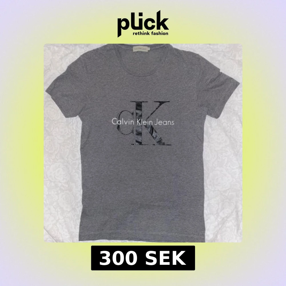 Säljer en grå t-shirt från Calvin Klein Jeans med det ikoniska CK-logotypen tryckt på framsidan. T-shirten är använd några få gånger och har inga defekter. Den är i storlek S