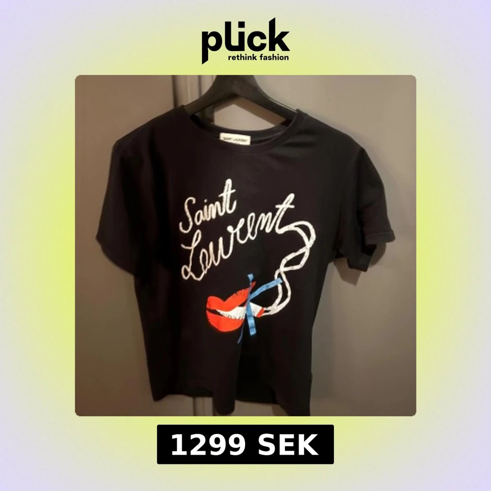 Snygg svart t-shirt från Saint Laurent med ett coolt tryck av röda läppar och texten 'Saint Laurent' i vitt. Perfekt för en stilren look.