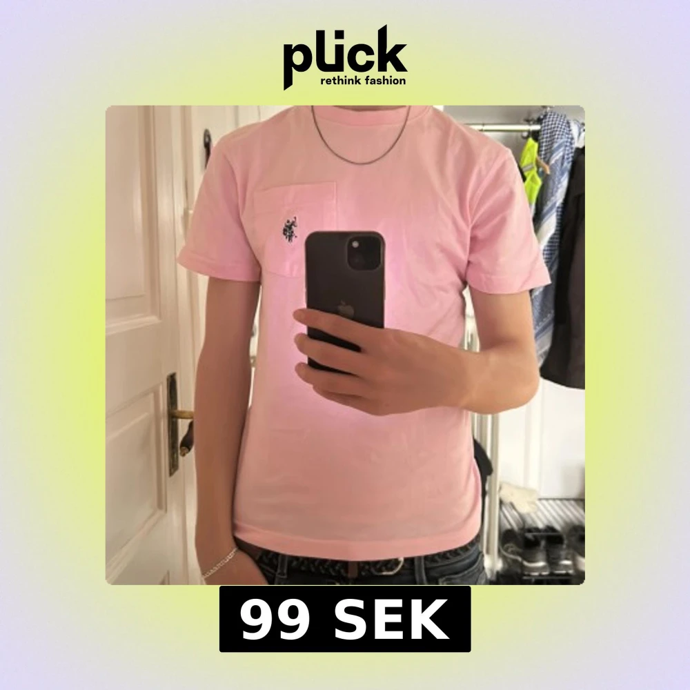 Säljer en ljusrosa t-shirt från U.S. Polo Assn. med klassisk passform. T-shirten har en bröstficka med broderad logga i mörkblått. Perfekt basic-plagg med rund hals och korta ärmar.