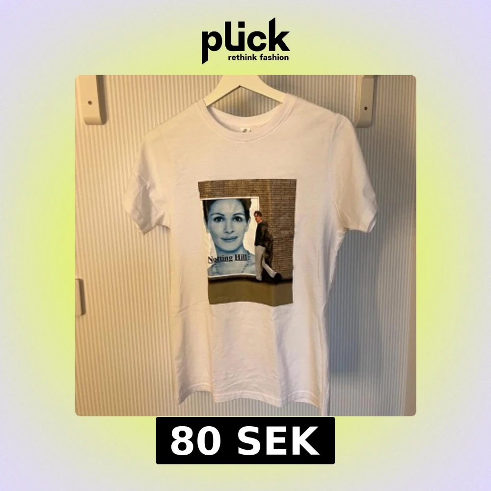 Vit t-shirt från Uneek i bomull med tryck från filmen Notting Hill på framsidan. Klassisk passform med rund hals och korta ärmar. Perfekt för dig som gillar film och vill ha en unik t-shirt i garderoben. Köpt i london men passade tyvärr inte så helt oanvänd.Bara att höra av dig!