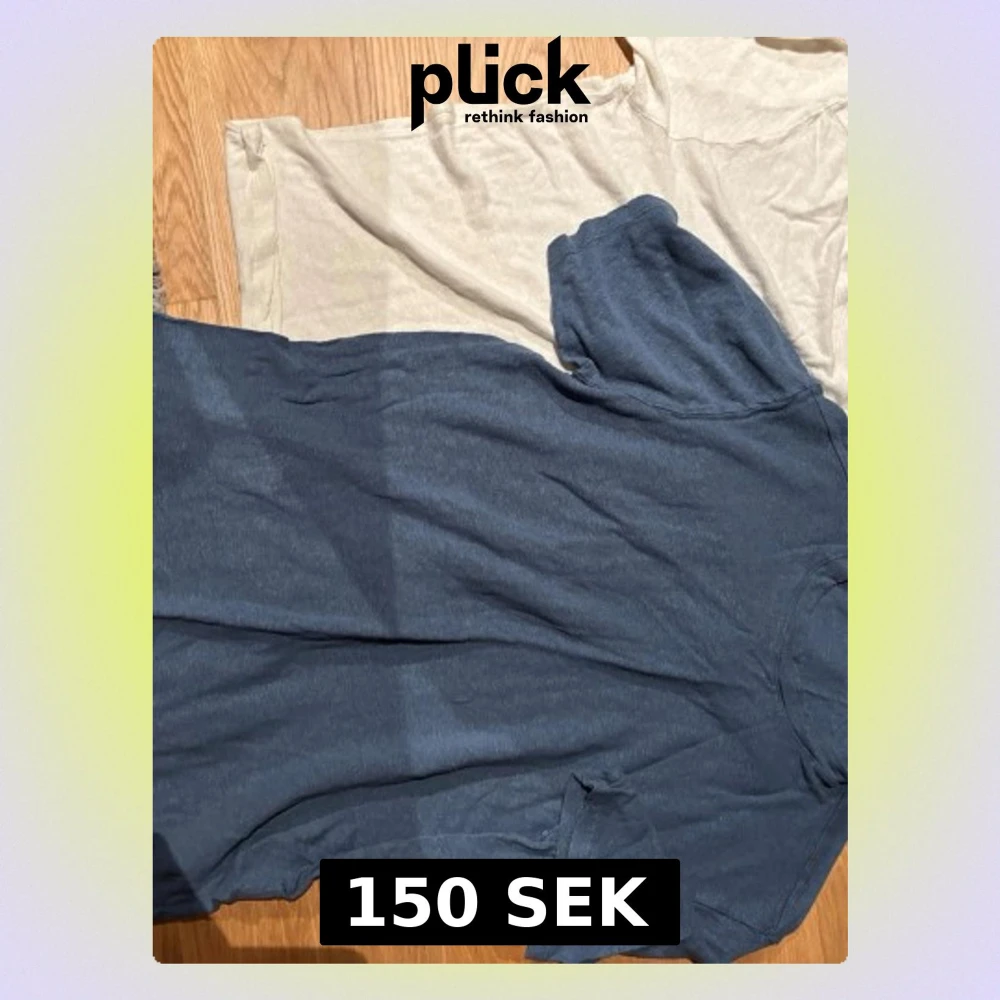 Säljer två enkla t-shirts, en i mörkblå och en i ljusbeige. Båda har klassisk rund hals och korta ärmar. Perfekta till jeans eller shorts för en clean och avslappnad stil. Materialet känns mjukt och skönt mot huden. Gjort av linne