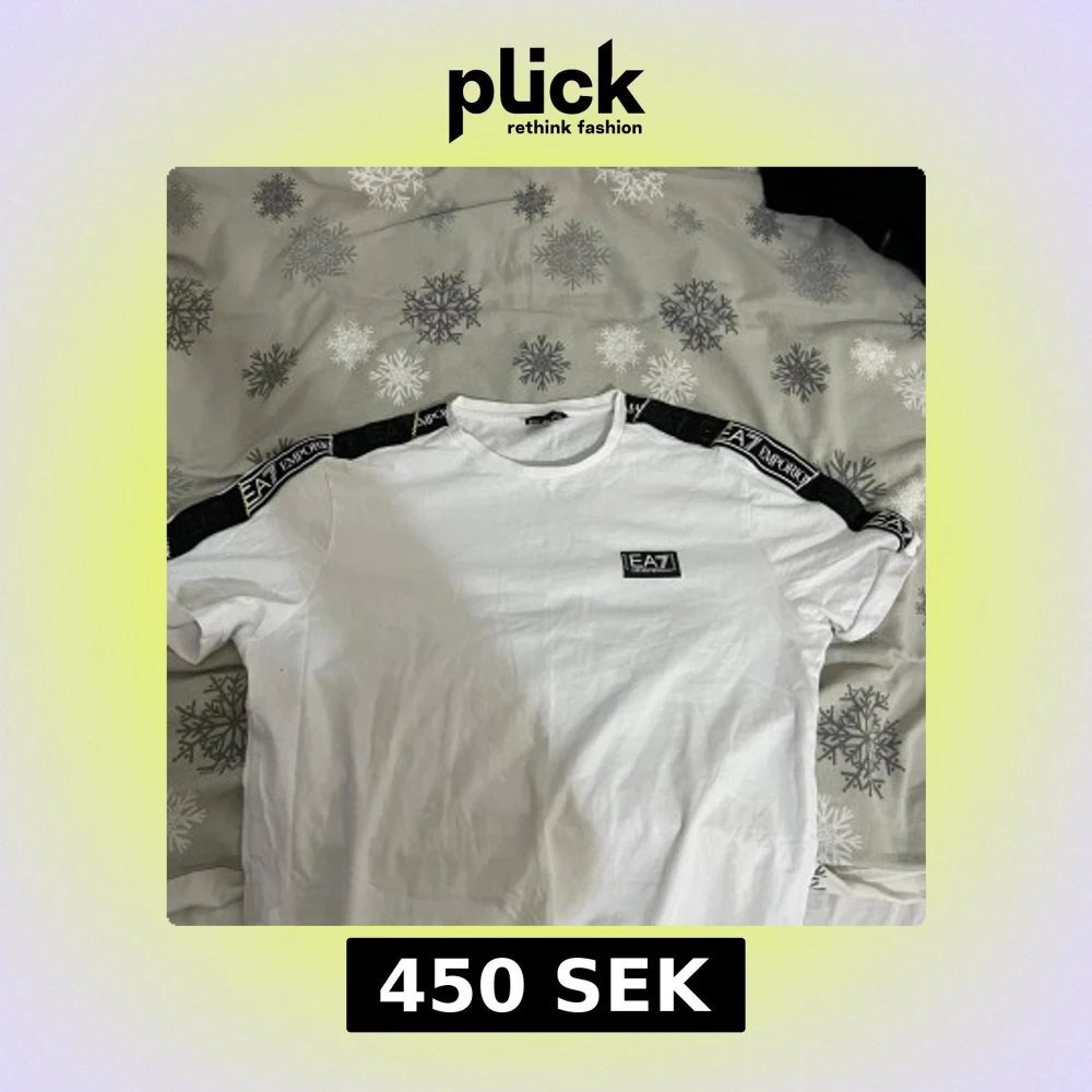 Snygg vit t-shirt från EA7 Emporio Armani med logga på bröstet och längs ärmarna. Den har en klassisk rund hals och korta ärmar. Perfekt för en stilren och sportig look.