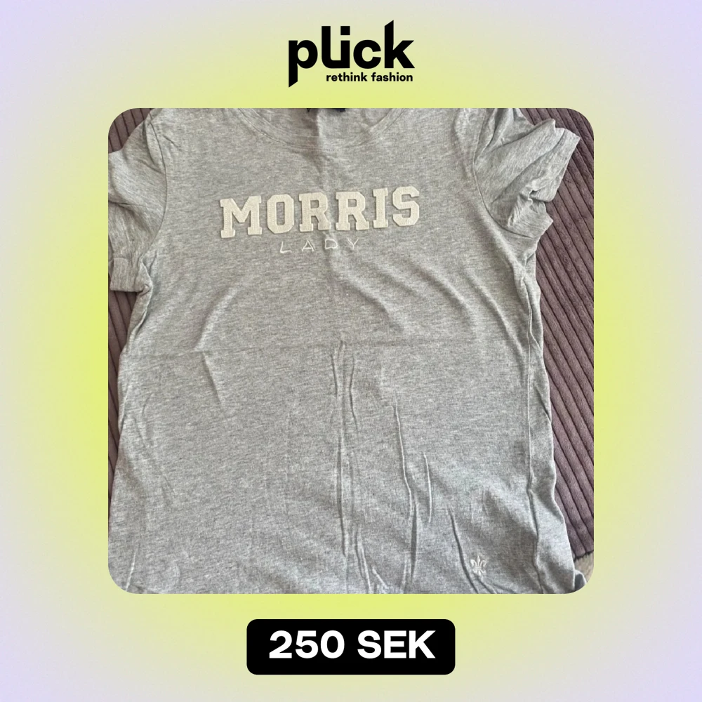 Säljer en snygg grå t-shirt från Morris Lady. Den har korta ärmar och ett stilrent tryck med 'MORRIS LADY' på framsidan. Perfekt för en avslappnad vardagslook. Passar bra till jeans eller shorts!