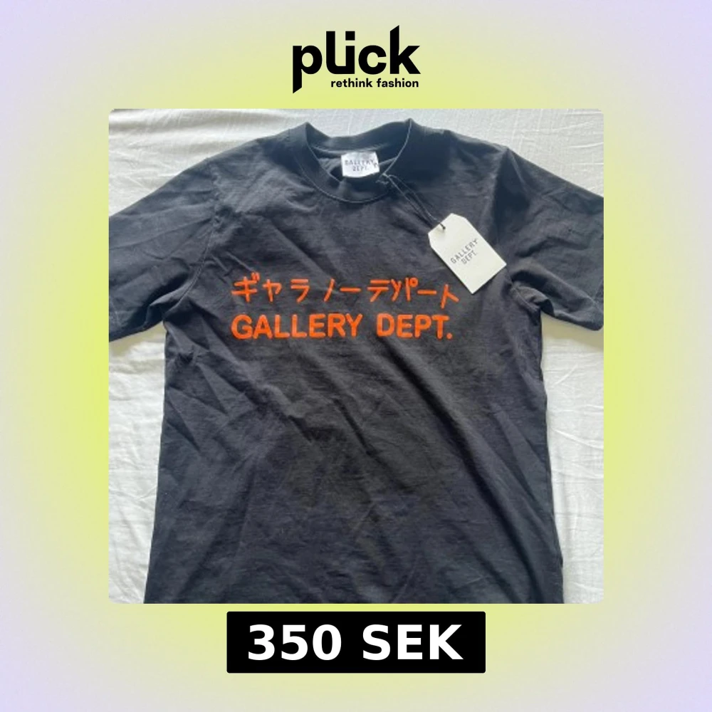 Svart t-shirt från Gallery Dept. med orange tryck på bröstet i både japanska tecken och text. Klassisk rund hals och korta ärmar. Materialet är mjuk bomull, perfekt för en chill och stilren look.