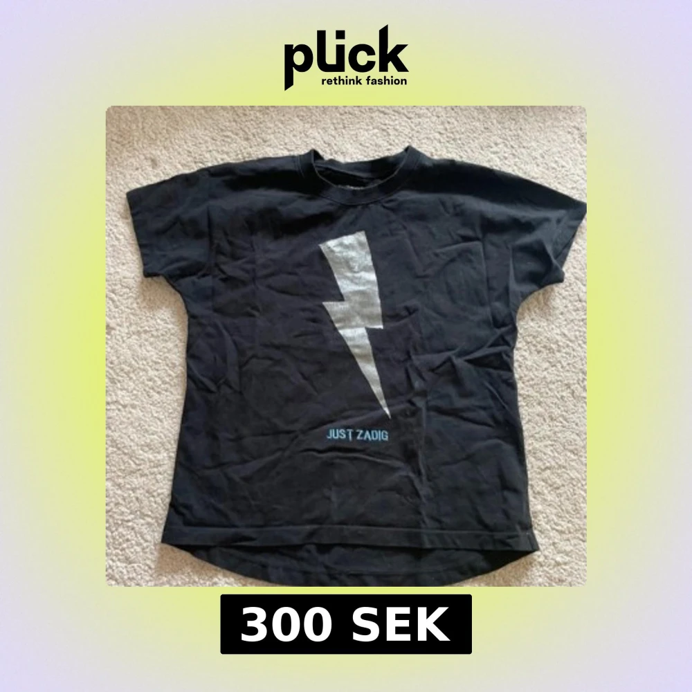 Cool svart t-shirt från Just Zadig med en stor silverfärgad blixt på bröstet. Klassisk rund hals och korta ärmar. Materialet är mjuk bomull och trycket ger en edgy vibe. Perfekt för dig som gillar statement-plagg och vill sticka ut.