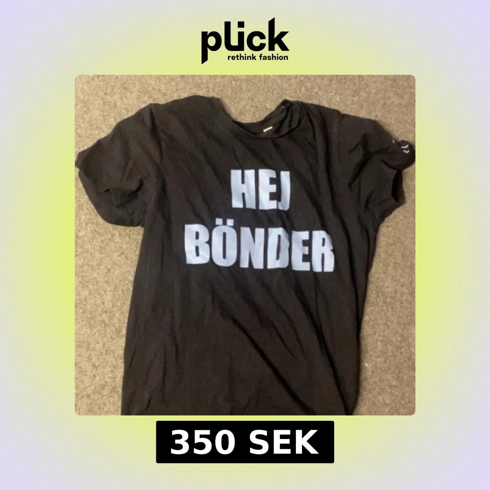 Svart t-shirt med stort vitt tryck på bröstet där det står 'HEJ BÖNDER'. Klassisk rund hals och korta ärmar. Perfekt för dig som vill sticka ut med ett roligt statement. T-shirten är gjord i mjuk bomull och har en avslappnad passform.