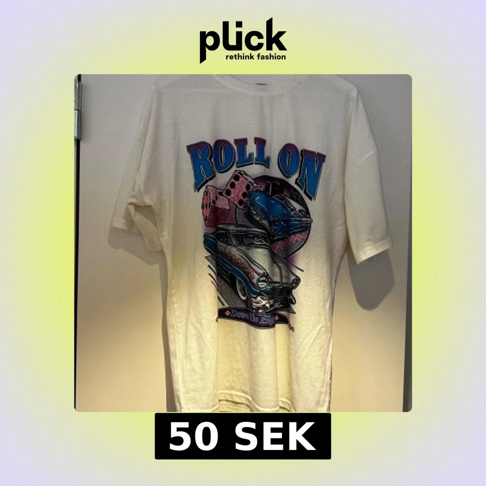 vit t-shirt med ett stort retrotryck på framsidan. Knappt använd, i väldigt fint skick, från shein, storlek S-oversized