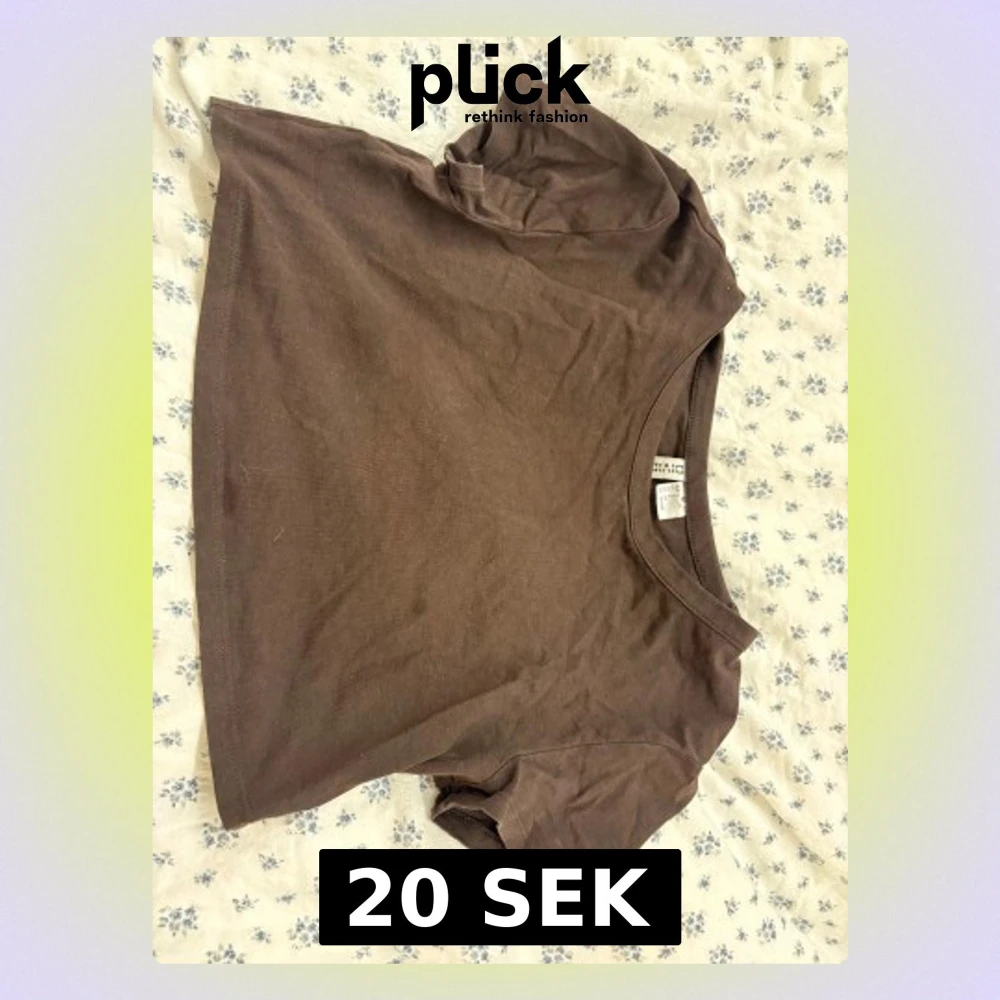 Säljer en enkel brun croppad topp från H&M Divided. Modellen har rund halsringning och korta ärmar, perfekt för en chill och avslappnad stil. Materialet är mjuk bomull som känns skönt mot huden. Passformen är normal och toppen är lätt att matcha med jeans eller kjol.